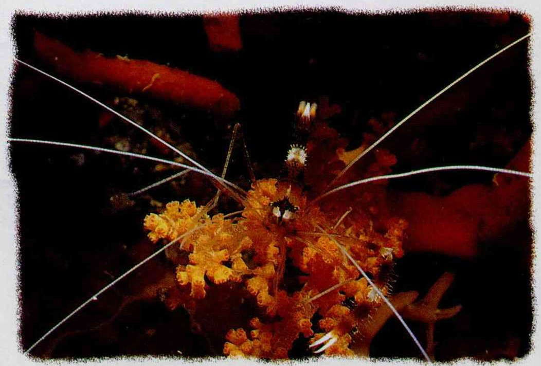 Banded coral shrimp are one of the most beautiful shrimp species found in coral reefs. How delicate are their six long and slender feelers! Eating decaying matter, parasites and other such detritus, they serve as sanitation workers of the seas.