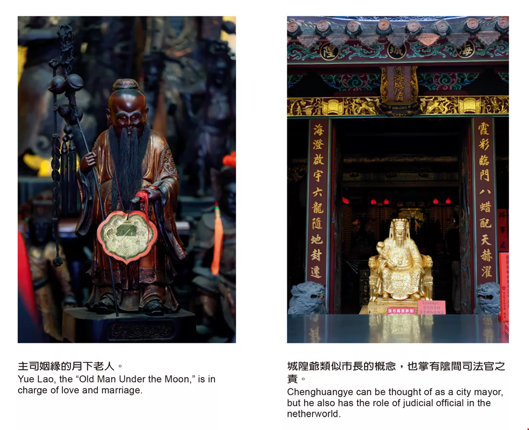 The deities in the main hall of the Taipei Xia-Hai City God Temple can be thought of as the members of a city government, with Chenghuangye (the City God) in the center and his staff in front.