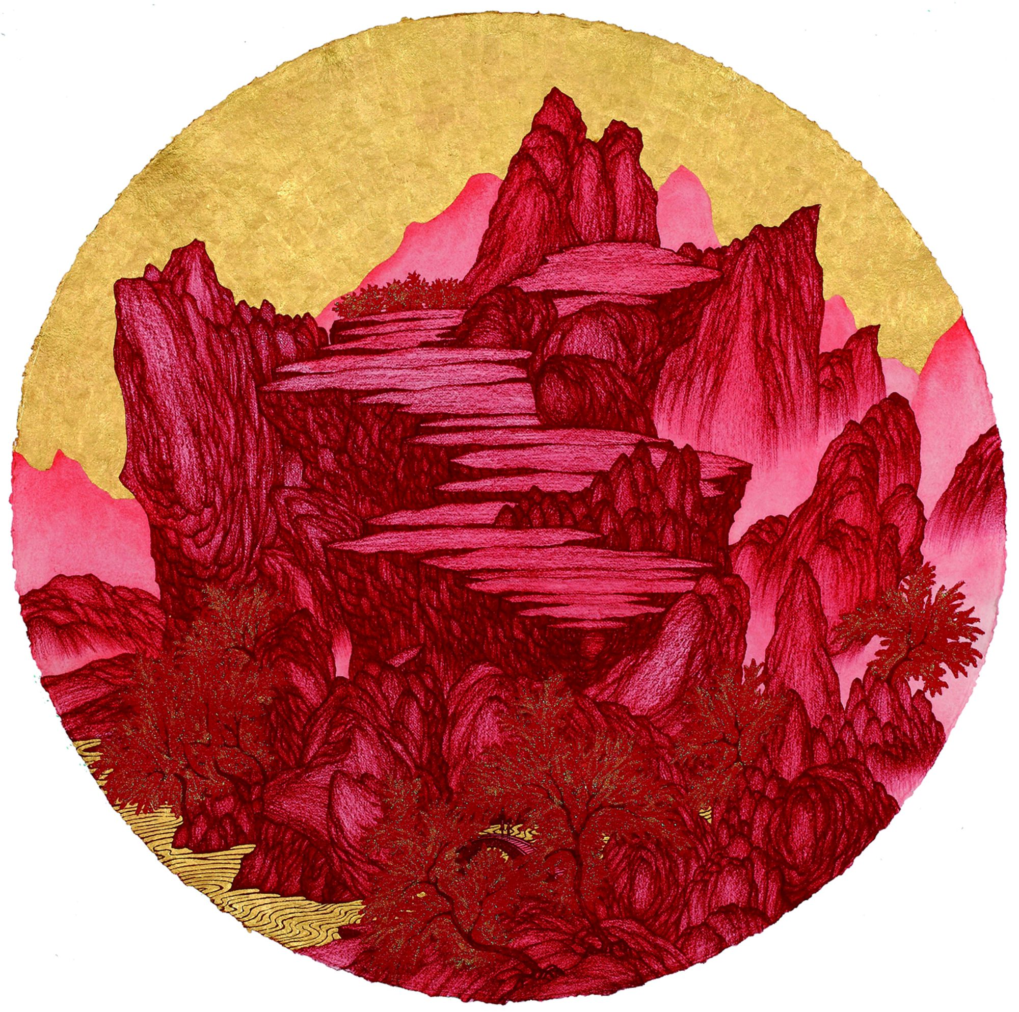 Small Landscapes II: Maple Gorge Ink and gold leaf on paper, 2015 130 x 130 cm
