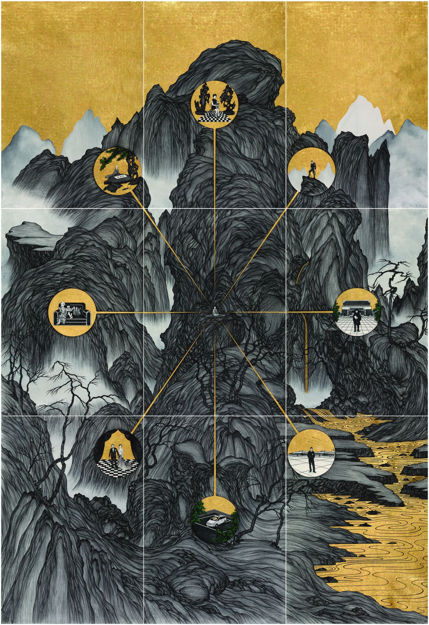 Small Landscapes II: Peace of Mind Ink and gold leaf on paper, 2015 130 x 130 cm