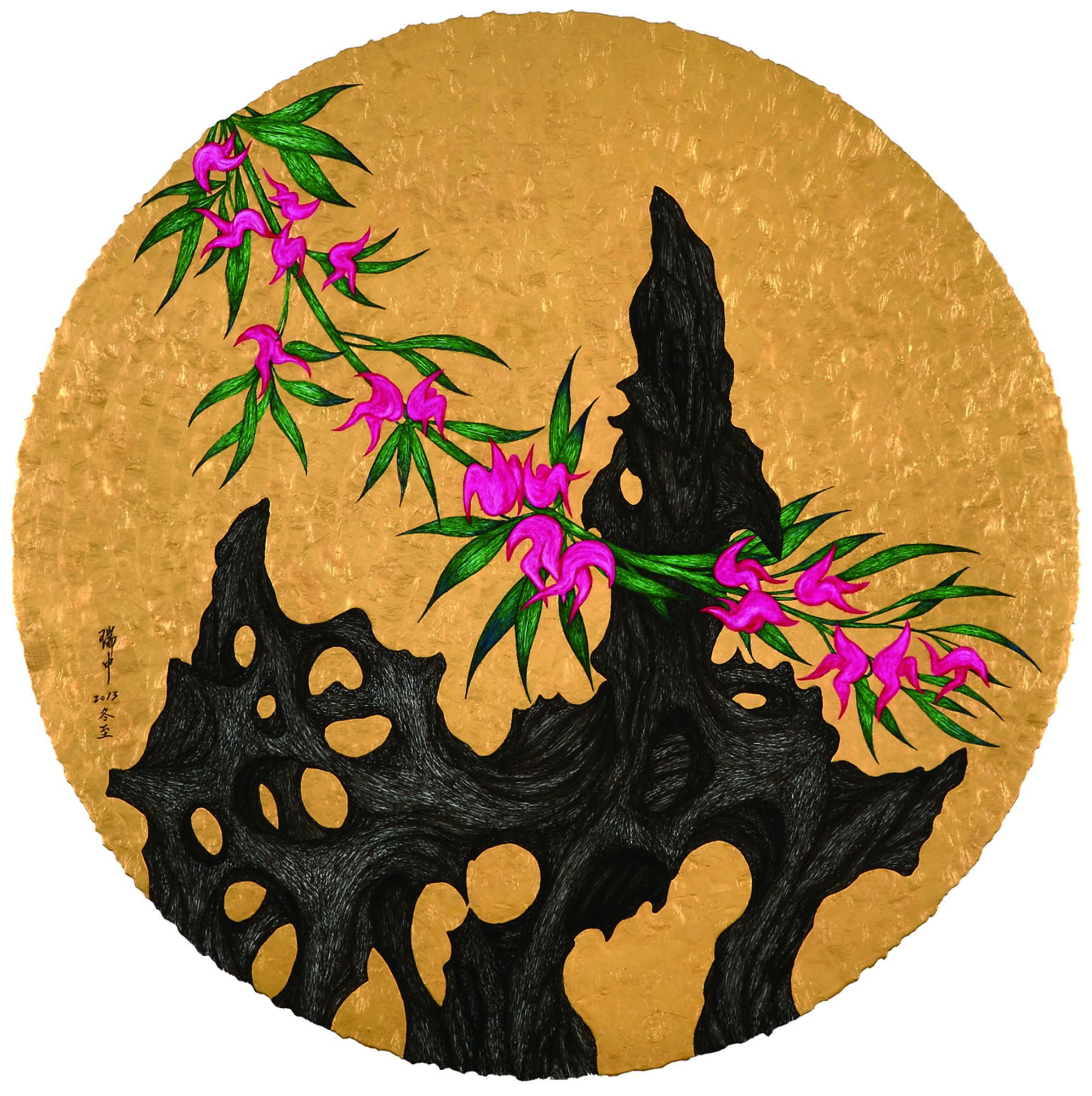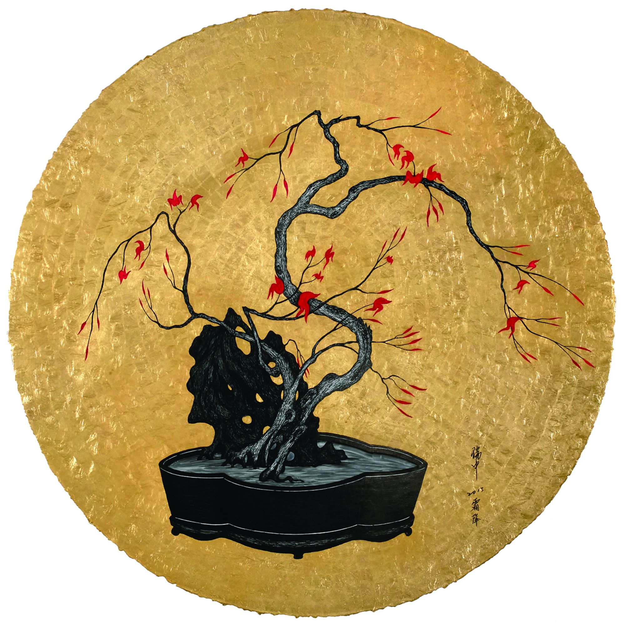 Flower Forever: Spring Comes Ink, oil and gold leaf on canvas, 2013 100 x 100 cm