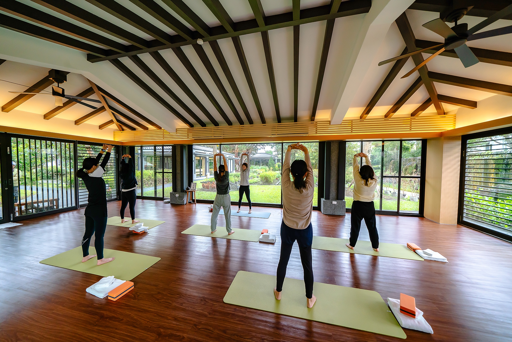 Gaeavilla Resort offers yoga and other wellness classes. Stretching amid verdant surroundings is a real pleasure. (photo by Lin Min-hsuan)