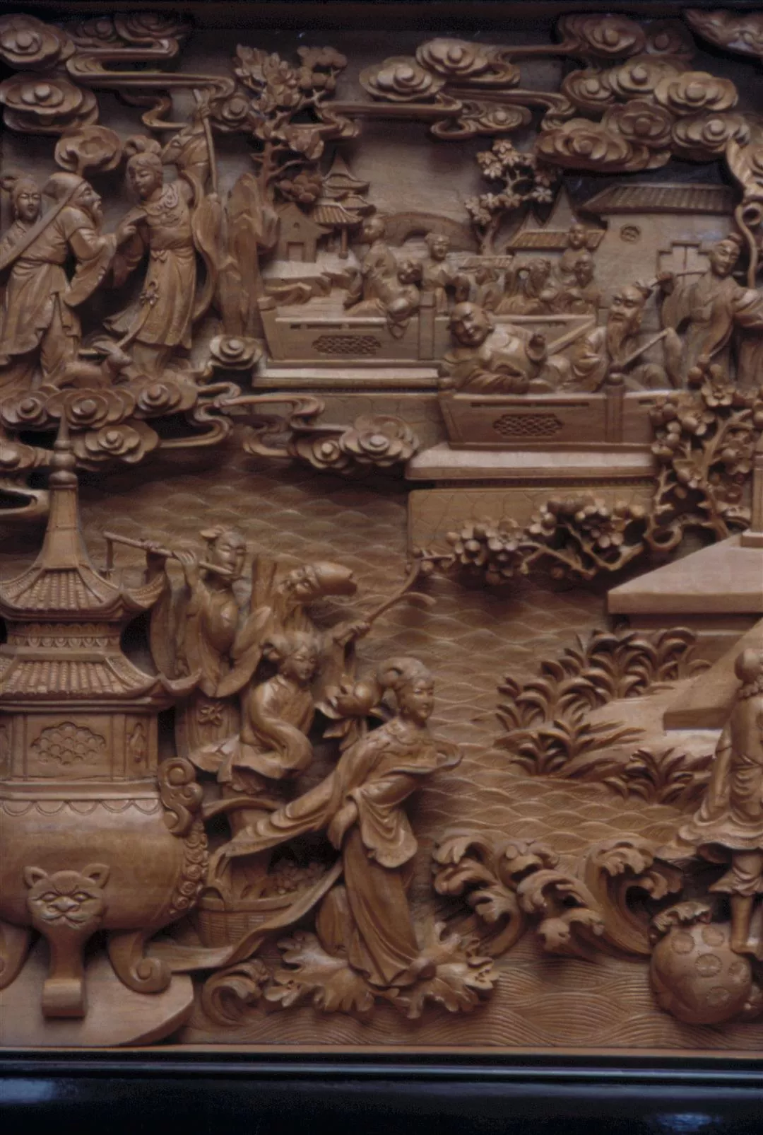 1,2,3. Chinese style furniture portrays many types of "people" and "bird painting" scenes. 1,3. A beautiful Chinese style screen. 2. A portion of a tabletop. 4,5,6. Chinese style furniture features exquisite engraving work. 4,5. A close-up view of a closet and a screen. 6. The detailed engraving of living room furniture.