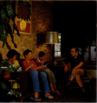 After Mr. Chou had returned to his study, and Madame Wei-wei had gone into the kitchen to prepare a drink for me, I took the liberty of looking around the decorations and furniture in the parlor. I noticed the attractive flower paintings by contemporary artists, and the comfortable appearance of the room, even though it had no air conditioner, carpet or large sofa.
