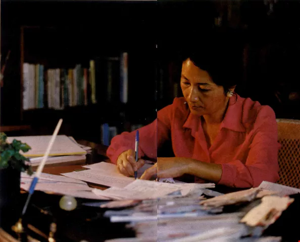Many of her pieces written in the past 13 years have fought against the injustice in the laws as they relate to women. For example, a married woman could not retrieve her personal property in the event of a divorce, although a man could. As a result of her pointing to these injustices, the Government has recently decided to amend the laws in question. In her column also, Madame Wei-wei has commented on speeches by prominent people, concerts, dance performances, books and movies, in an effort to persuade housewives to take up new hobbies, cultivate their spiritual growth and enlarge their horizons.