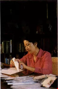 At present, she receives about 300 letters from readers each month, dealing with such diverse subjects as marriage, family life, the generation gap, medical and psychological problems. When I asked if she had much difficulty in answering the questions, she smiled and said: "At first I did not know how to answer many of those which were outside my experience. But now I adopt the policy of only answering questions on affairs of the heart and marriage myself, and seek the advice of experts on more specialized questions.