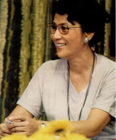 When I first arrived at her house one bright Sunday morning in the residential area known as the "New Garden City," I was first attracted by some 100 flower pots lining the approach to her door. As Madame Wei-wei, wearing a green dress and her hair in a bun, approached me, I noticed her dark eyes were shining, and that she looked young and beautiful despite her 47 years and the fact she was wearing no make-up.