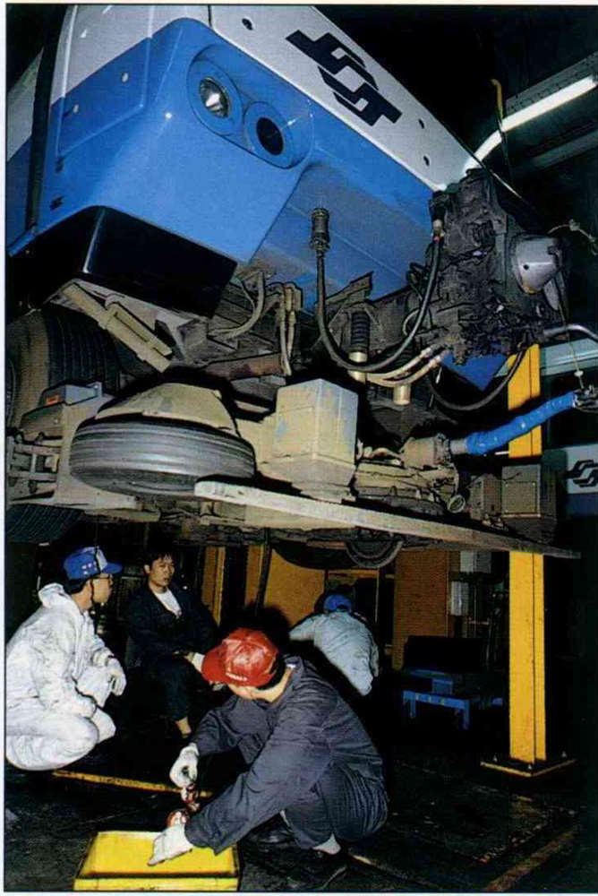 When high-tech products are imported from advanced countries, technology transfer and establishing an independent maintenance capability are the biggest problems, and the Mucha line is still seeking solutions. Pictured here is the EMU repair shop at the Mucha depot.