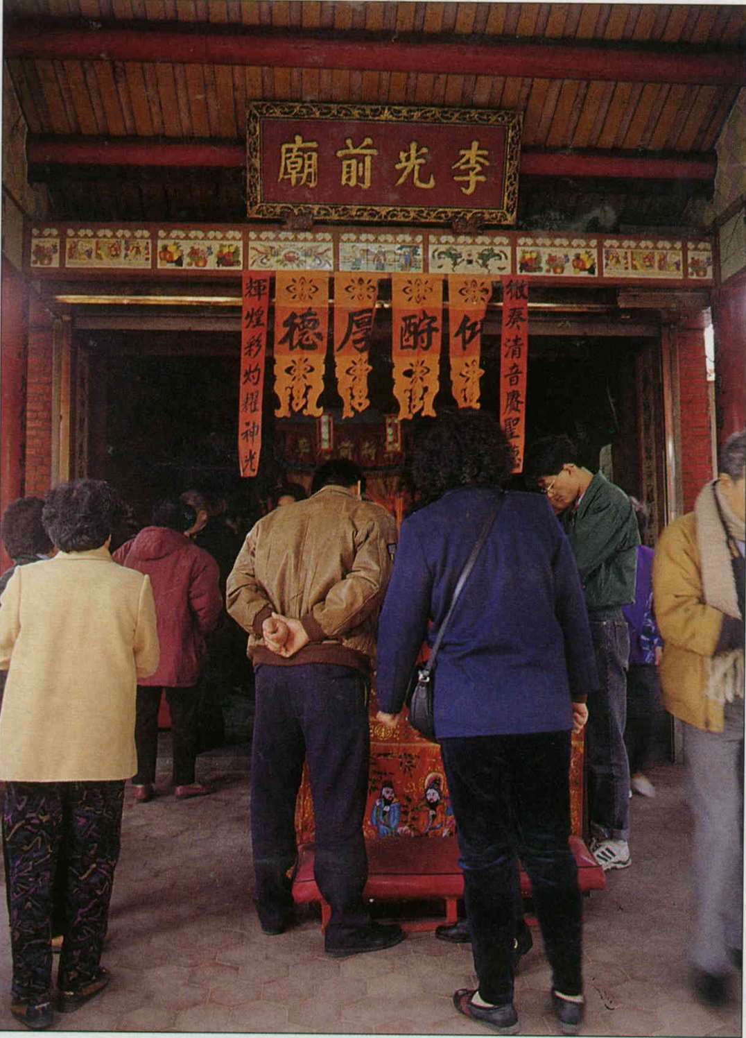 The locals thought that if the spirit of Li Kuang-chien was abroad, it might be a good idea to build a temple and venerate him, for perhaps he might protect the village and its people. So they built him a little temple outside the village, about the same size as most shrines to the god of the earth. Strange to say, after the temple was built, the villagers never again heard the sound of soldiers marching at night, and when they asked Li's spirit to help them or to divine the future, they often found their prayers answered. So in 1976 the villagers collected money and enlarged the temple to its present size.