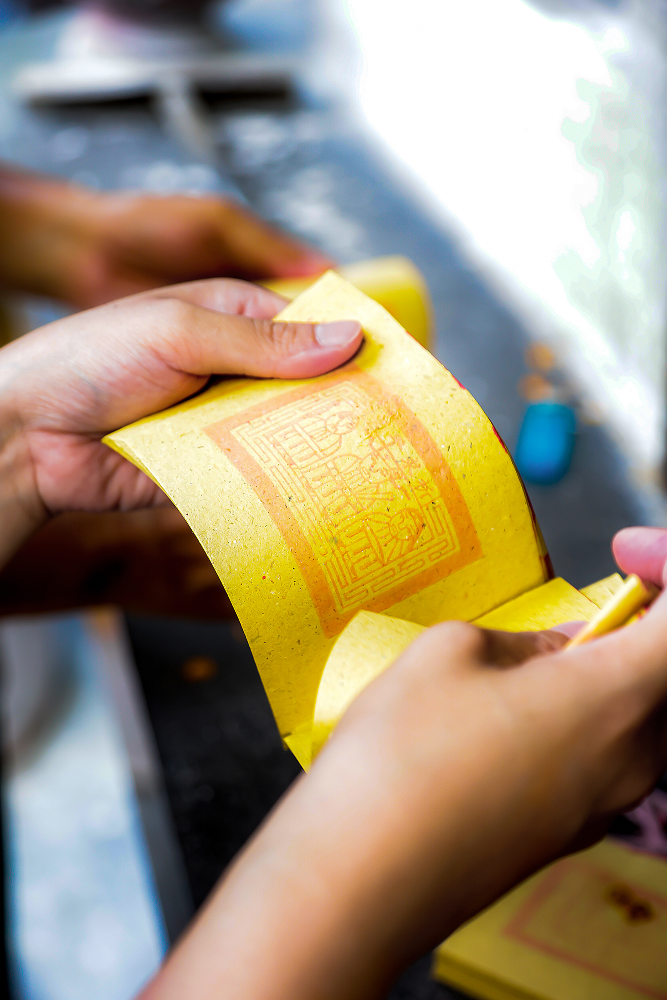 “If foil is the stand-in for denomination, more of it means the ‘bill’ is bigger, and so burning one big bill can replace several small bills of joss paper.” With this in mind, Chen increased the size of the tin foil on the joss paper from about the size of a fingertip to about ten times larger, differentiating his paper from other joss papers on the market.