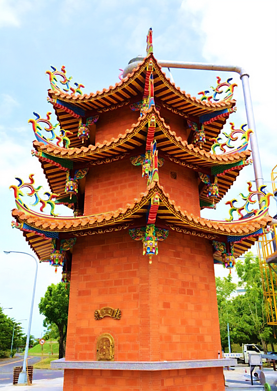 Many temples have installed pollution control equipment on their joss paper burners to reduce air pollution. (courtesy of Pingtung County Environmental Protection Bureau)