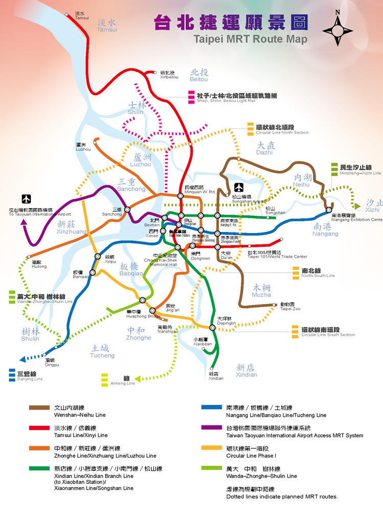 The clean, fast, and extremely reliable MRT system is the circulatory system for the Greater Taipei metropolitan area (composed of Taipei City at the core plus the most densely populated areas of New Taipei City that surround Taipei City in all directions). It has been no easy feat to construct the system, with the earliest conceptualization of a metro for Taipei dating back more than 40 years.