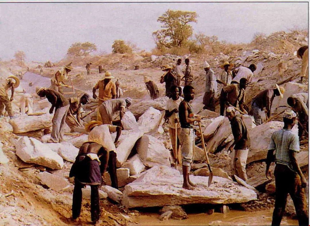 Clearing out dynamited rock to construct irrigation channels. Following the international recognition gained by the Burkina Faso ATM for its work at the Kou River Reclamation, the mission has begun a new project in the extremely challenging environs of the Bagre Reclamation. Once again, it is out to turn barren earth into fertile fields. (courtesy of CITC)