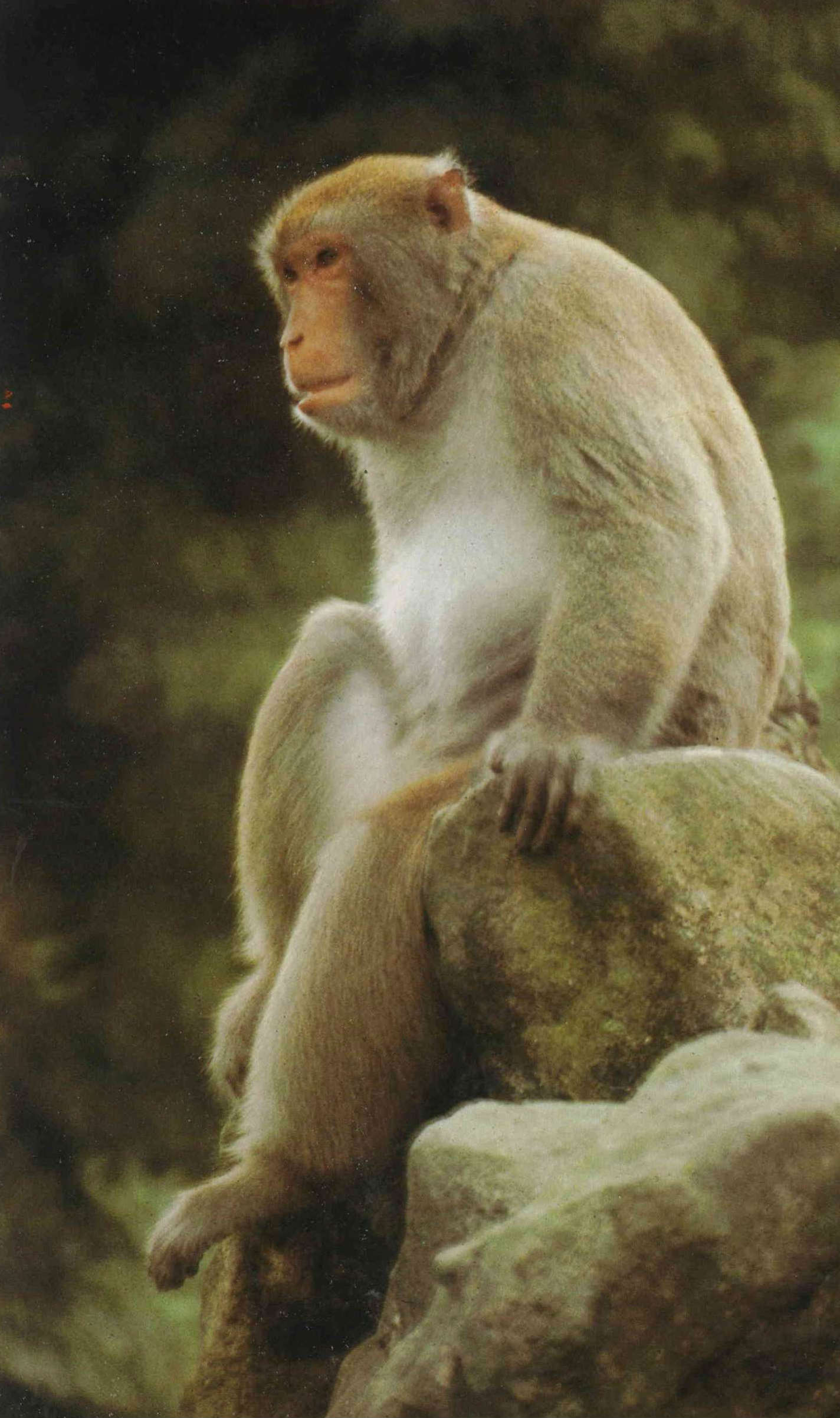 Monkeys have long been considered the closest link in the evolutionary line next to man. It is estimated that the rock-monkey has the intelligence equivalent to a 3 or 4 year old child. But, unfortunately, man has not been very generous to his evolutionary sibling. In the 50's and 60's rock-monkeys were found everywhere in Taiwan romping and playing about. They were so numerous that upon seeing a man they weren't a bit afraid. As more parks and high-rise buildings started to appear, the monkeys started a retreat into the mountains, from which they would never return. Man's hunger for land was not the only danger facing the playful rock-monkey. In 1972 the government finally passed legislation prohibiting the killing and exporting of the rock-monkey.