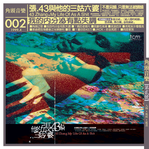 "My hometown is Yunlin, notorious for producing gangsters. And the indie music business requires a gangster's incisive approach, as well as music with personality, to stay at the leading edge of musical fashion. So that's why TCM's Chinese name uses the term for 'kingpin,'" says TCM founder 43 Zhang (aka Zhang Yi-ping, Chang Yi-ping, or 43 Chang), a cigarette dangling from his mouth.