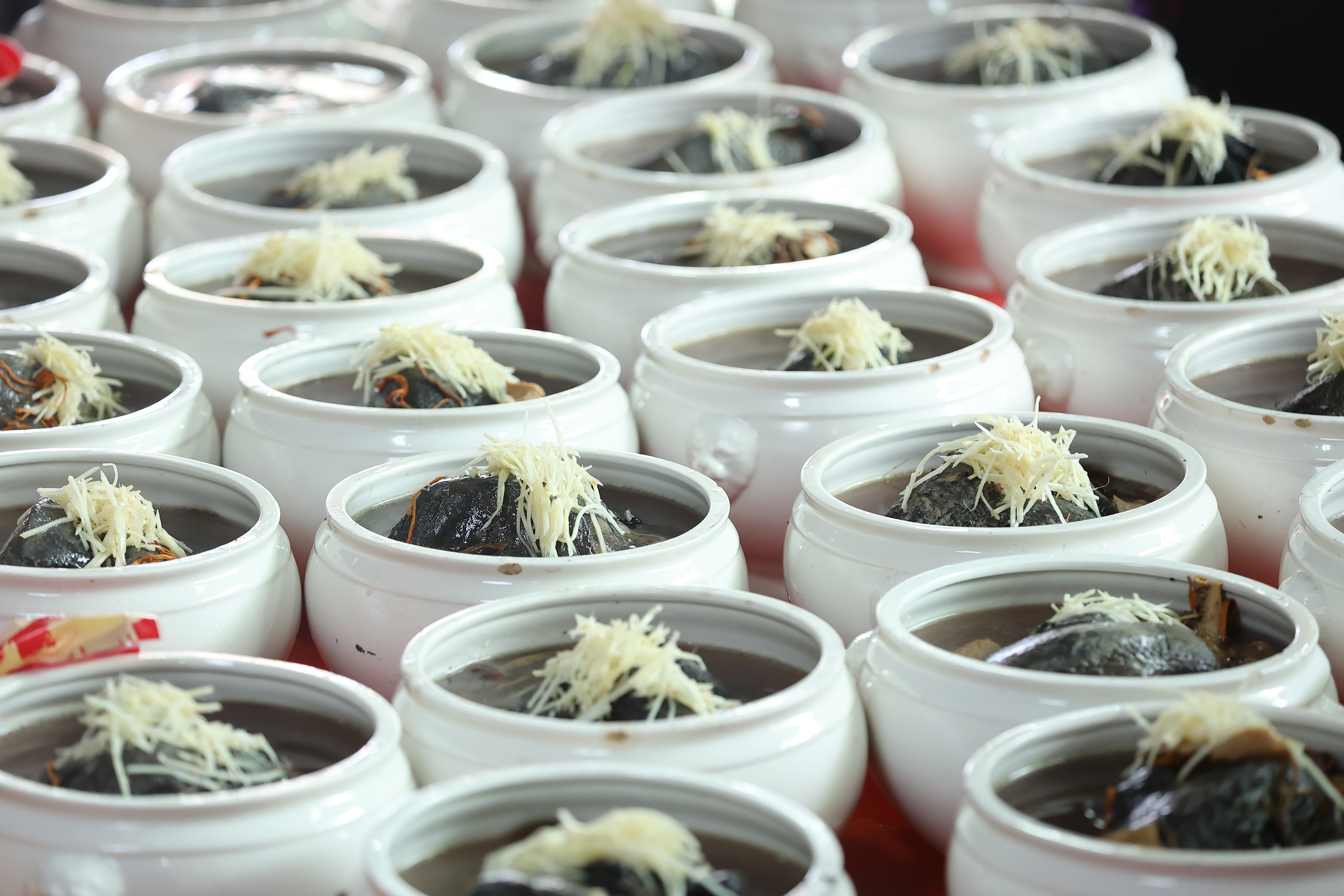 This old-school approach is perfectly embodied in the traditional coda to pān-toh banquets. The culture of frugality used to impel guests to take away leftovers—such as hong-bah braised pork, chicken soup, and meatball soup—to cook up at home.