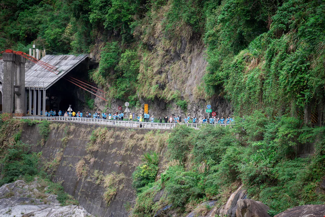 The most memorable thing about the TGM is the beautiful scenery of the Taroko Gorge. Important check-in points along the route—such as the Changchun (Eternal Spring) Shrine, which looks like a scene from a traditional Chinese landscape painting, and the precipitous Yanzikou (Swallow Grotto), both of which are part of the full marathon course—cause runners to stop to check in and take photos. As they enjoy the sunshine and phytoncides along the route, they also pass through cool, shady tunnels.