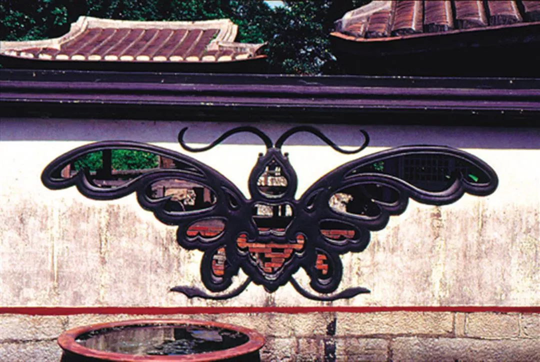 Since butterflies stand for good fortune, traditional architecture often featured butterfly motifs. Shown here are butterfly-shaped lattice windows at the Lin Family Gardens in Banqiao.