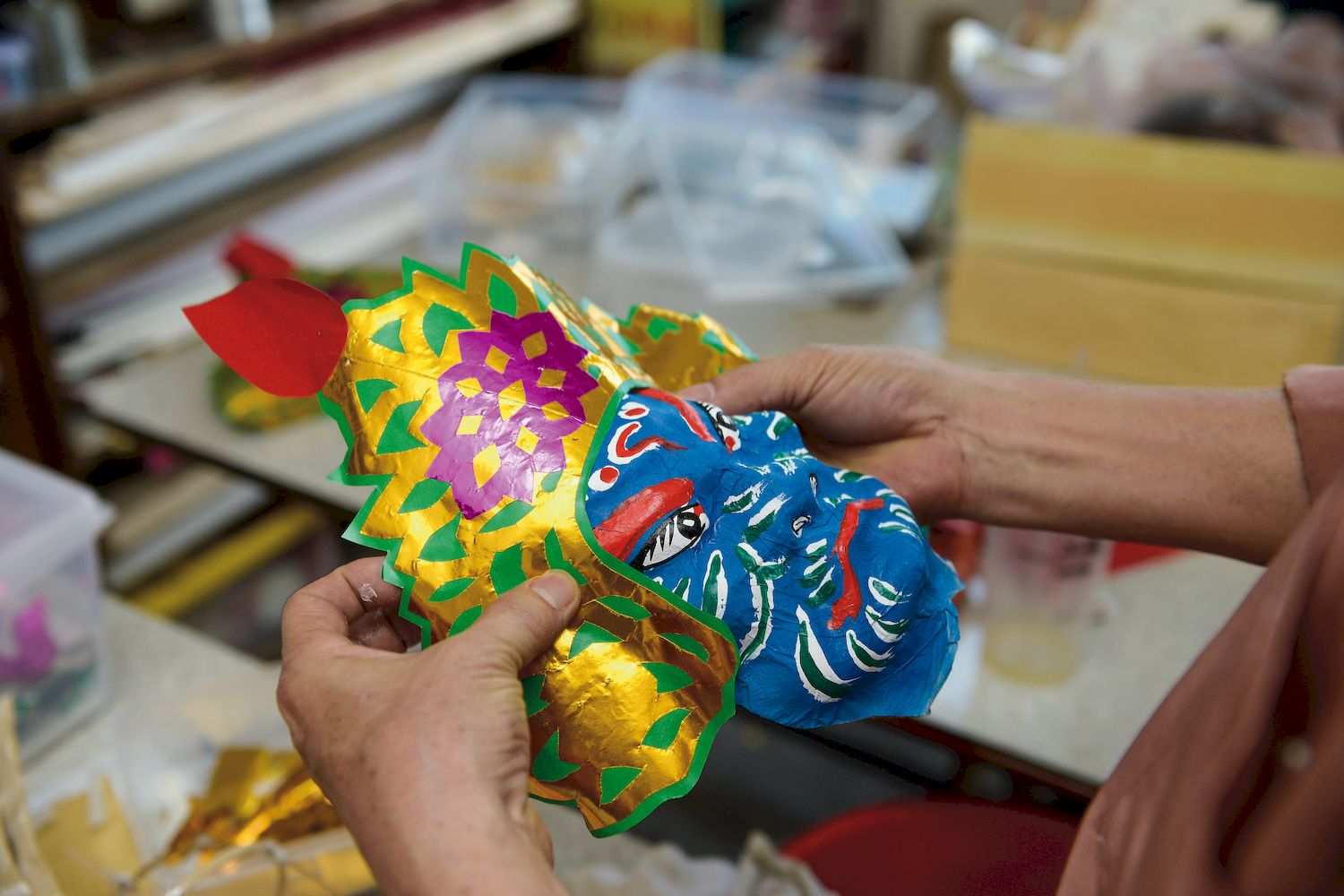 In Taiwanese-style papier mâché (huzhi), artisans build a bamboo framework, then decorate it by gluing paper to its exterior. Generally speaking, modern Taiwanese-style papier mâché products lack much of the aesthetic appeal they used to have. With the simplification of Daoist rituals and funerals,