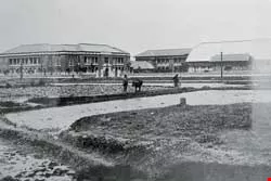 Taihoku Imperial University had expansive grounds. Showing the law school at Hsuchou Road, this photo-graph provides a glimpse of the Taipei Basin before development.