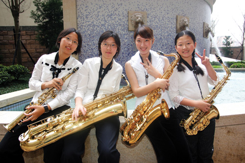 The Chang sisters' saxophone quartet is comprised of the eldest, Chang Yu-tzu (second from right), the second eldest, Chang Man-yu (second from left), the third eldest, Chang Yu-feng (first left), and the youngest, Chang Chia-jung, who's still a fifth-grade student. They add romance to the remarkable story of Houli's saxophone industry.