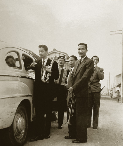 Shortly after the band was formed, there was a fire in Chang Chi-pan's home which almost destroyed his saxophone. Chang Lien-cheng, the band's trumpet player, who was a picture framer by trade and was skilled at gongbi, a style of traditional Chinese painting characterized by fine brushstrokes and close attention to detail, took the twisted and blackened saxophone home and spent the next three months taking the instrument apart piece by piece, almost 400 in all, and making meticulous drawings of them. He then took a strip of brass from under a sliding door in his home to make into saxophone keys, and melted down a treasured old silver coin to use as soldering material.