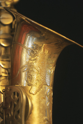 The saxophone little Tsung-yao is holding in the photograph is engraved with a dragon pattern and was made by his grandfather. After the museum opened, Chang Tsung-yao bought back this saxophone from its owner and put it on display. The instrument is engraved with Chang Lien-cheng's name-a mark of his pride and confidence in his handiwork.