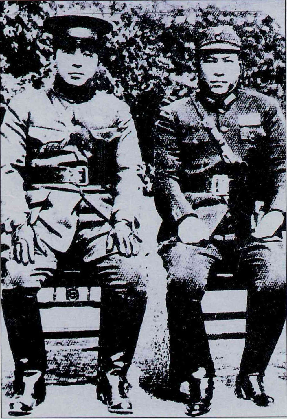 A photo of Zhang (left) and Yang Hucheng before the Xi'an Incident. The fates of the two after the incident were very different and Yang was executed by personnel from one of the KMT government's secret service organs in 1949.