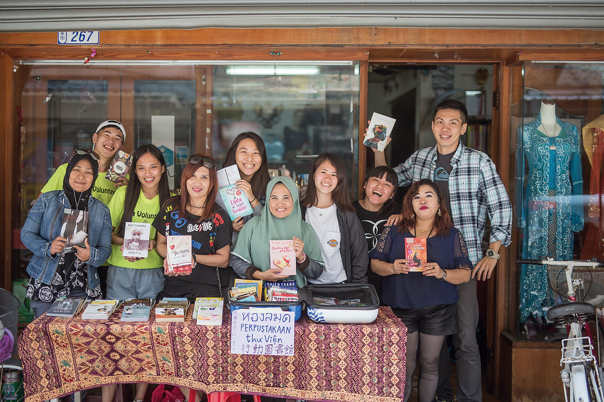 Di luar hanya terlihat sebuah meja Panjang, tidak berapa lama kemudian beberapa pelajar SMA berdatangan masuk ke dalam toko, membawa keluar sebuah koper dan mengeluarkan sehelai kain panjang bercorak oriental sebagai alas meja, kemudian dengan rapi menata buku-buku berbahasa Indonesia, Vietnam dan Thailand, dalam waktu tidak sampai setengah jam Perpustakaan Mobilitas Asia Tenggara telah resmi dibuka!