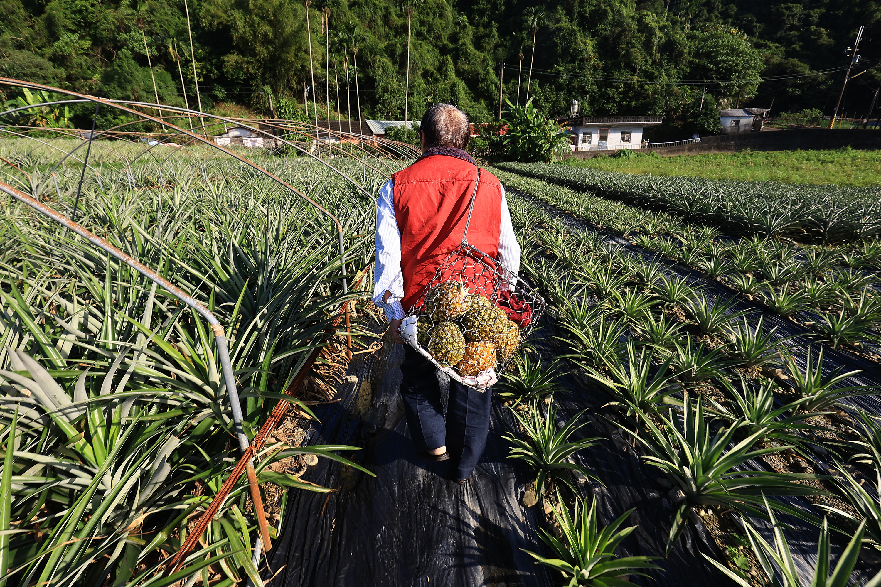 Pemilik kebun Jiang Chao-qing membawa kami ke kebun untuk memetik buah, kaki melangkah ke depan dan menginjak ladang, seketika dapat terasa daun nanas yang “bisa melukai”. Jiang Chao-qing berteriak, “Langkahkan kaki dengan pasti, daun-daun akan membuka jalan secara alami!” Sekali mencoba, ternyata apa yang dikatakan dan pengetahuan petani tua terbukti.
