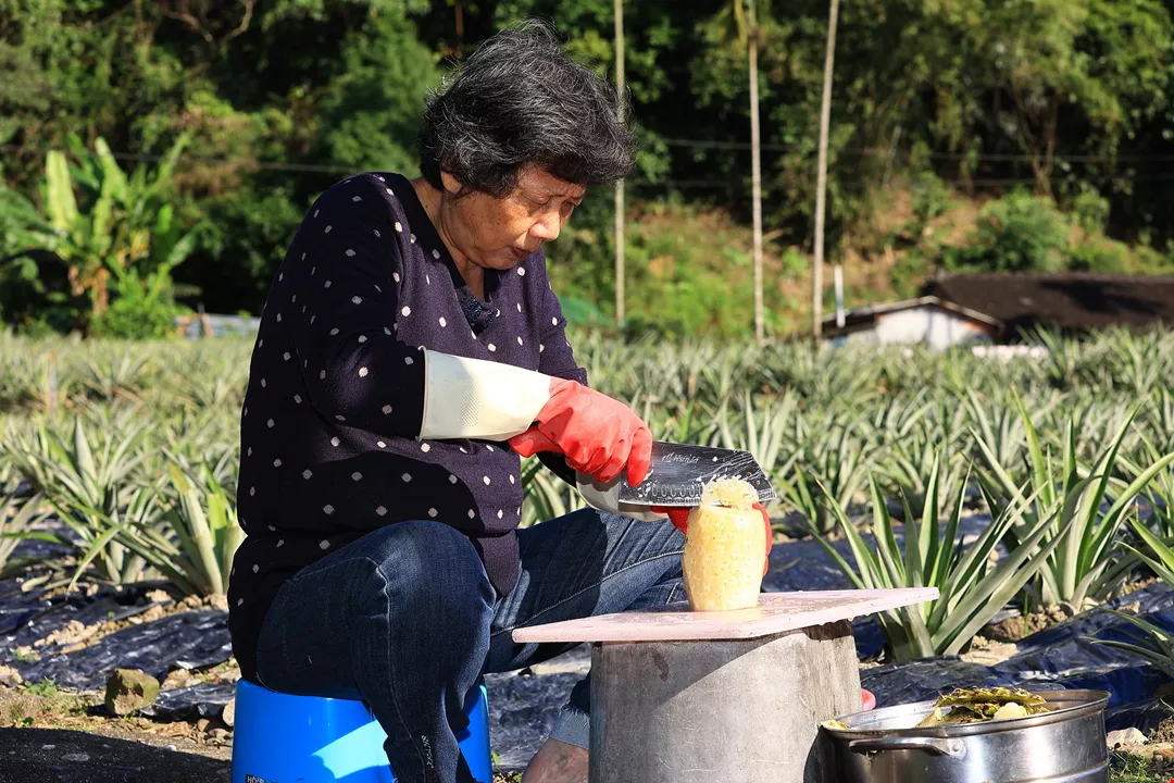 Berjalan di ladang nanas, ketika kaki melangkah maju, daun-daun terbuka secara alami, inilah pengetahuan petani tua.