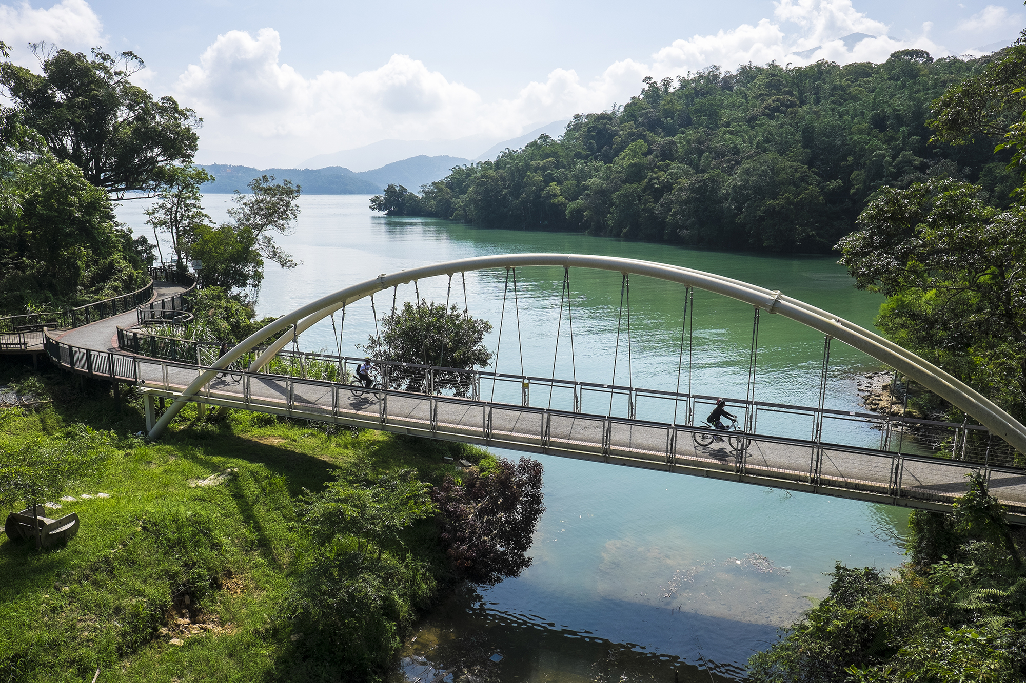 Sun Moon Lake di Taiwan tengah adalah telaga terbesar di gunung tinggi di Taiwan, dengan ketinggian 748 meter dari permukaan air laut, menciptakan pemandangan gunung berkabut yang berubah-ubah. Biro Jalan Raya membangun rute sepeda yang mengelilingi telaga Sun Moon Lake, dan pada tahun 2014 menjalin ikatan persaudaraan dengan “Rute Shimanami Kaido” Jepang, saling mempromosikan pariwisata dan kegiatan bersepeda kedua negara. Kantor Pengelola Kawasan Pemandangan Sun Moon Lake mengatakan, terdapat rute unik sepanjang 400 meter yang menghubungkan Shuishe ke Pusat Pengunjung di Xiang Shan, “rute sepeda di atas air”, bisa membuat Anda merasa bagaikan sedang berlayar dengan sepeda. Para pengunjung bisa bersantap dan membeli kebutuhan makanan di dermaga Ita Thao, menikmati kuliner suku asli Thao dan menyeruput teh hitam khas Sun Moon Lake yang terkenal, lalu melanjutkan perjalanan.