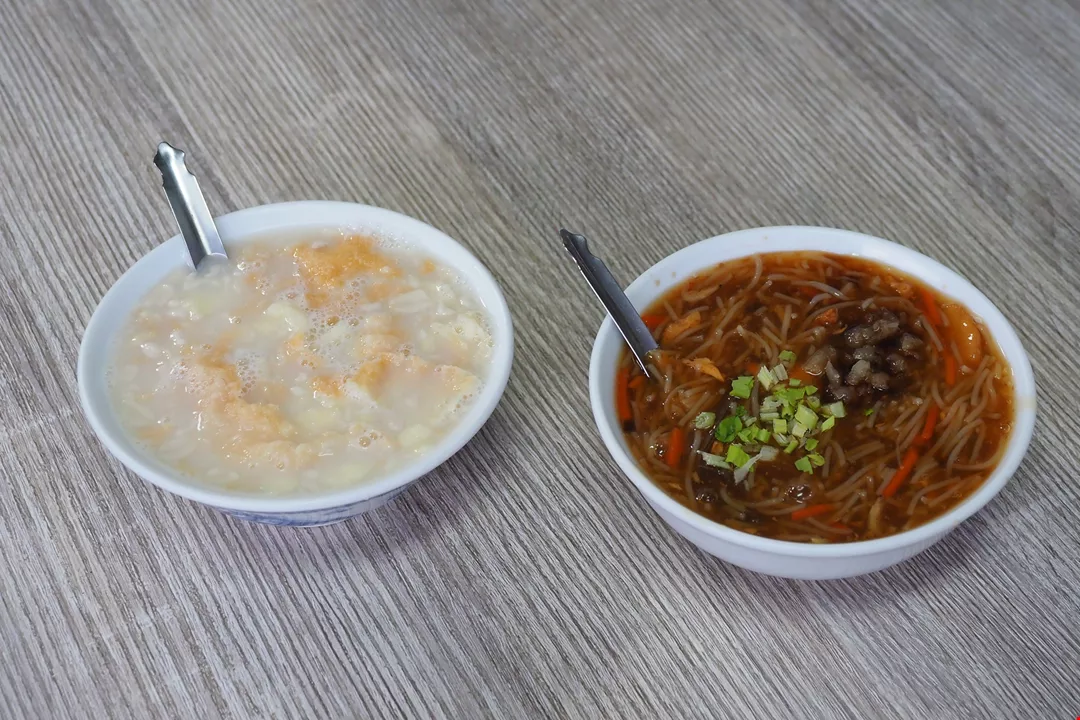 Sup kacang dipadukan dengan kue pong pia, sup kental bihun merupakan masakan cita rasa kuno yang autentik di Su’ao.