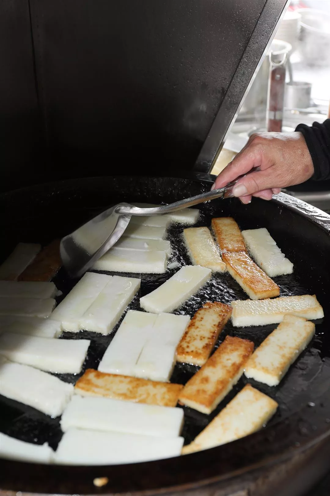 Lai Kuo-cheng secara khusus menyesuaikan kerenyahan lapisan luar kue lobak dan tingkat kepedasan sausnya, menambahkan sentuhan kehangatan manusia pada hidangan jajanan tradisional ini.