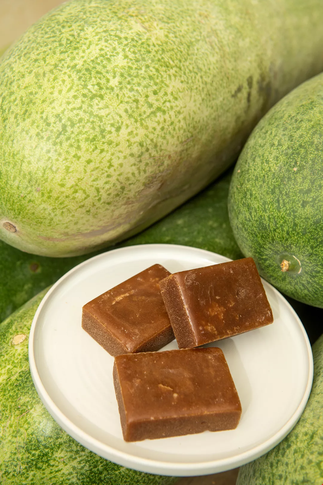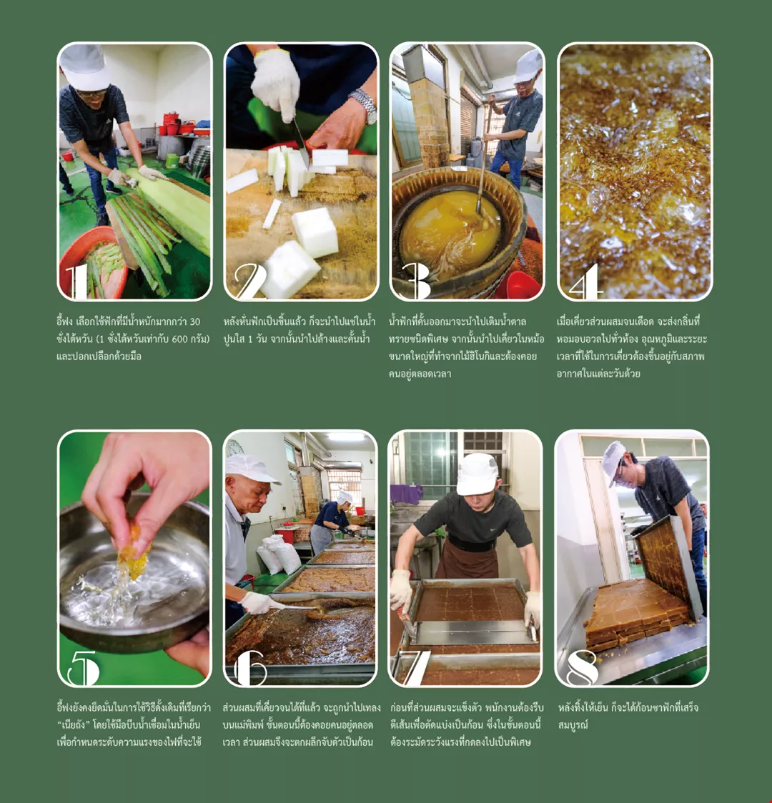 Yifeng yang memiliki pengalaman ratusan tahun, dengan mahir mencampur kundur dan gula, diolah menjadi bongkahan kundur yang wangi dan manis.