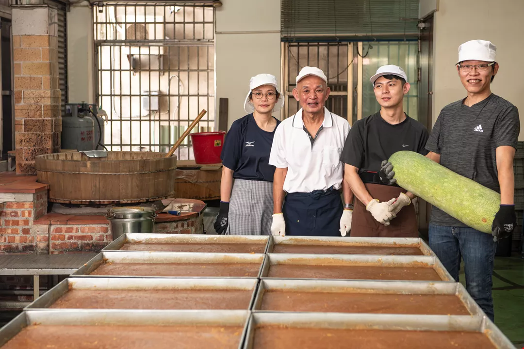 Lin Ke-lie (kiri 2) mempertahankan produksi kundur dan cita rasa kundur yang diwariskan, kini mewariskannya pada penyambung usaha, putrinya Lin Yu-lun (kiri 1) dan putranya, Lin Yu-shun (kanan 2).