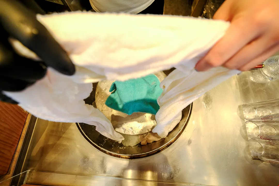Mencium aroma sari kundur murni yang tersebar memenuhi ruangan, dengan penasaran kami bertanya, sampai kapan baru selesai dimasak? Lin Ke-lie tersenyum dan berkata, perlu melihat kondisi cuaca baru bisa diketahui berapa lama memasaknya. Putrinya, Lin Yu-lun menyampaikan bahwa waktu memasak ditentukan dengan cara mencubit gula di masa lalu. “Mencubit untuk mengetahui tingkat keras-lembutnya, lalu kami akan menyesuaikan suhu,” katanya. Ketika gula dimasak hingga mencapai kekentalan tertentu, juru masak akan mengambil satu baskom air dingin, menuangkan satu genggam gula cair, lalu dicubit dan diuleni dengan tangan untuk memastikan sirup mencapai kondisi seperti gula maltosa. Memang saat ini bisa menggunakan termometer untuk mengukur suhu sirup gula bagian tengah, yang bertujuan membantu juru masak membuat putusan, akan tetapi Lin Ke-lie masih bersikeras menggunakan metode tradisional dengan cara mencubit, untuk memastikan apakah sirup sudah matang hingga tingkat kekentalan yang prima.