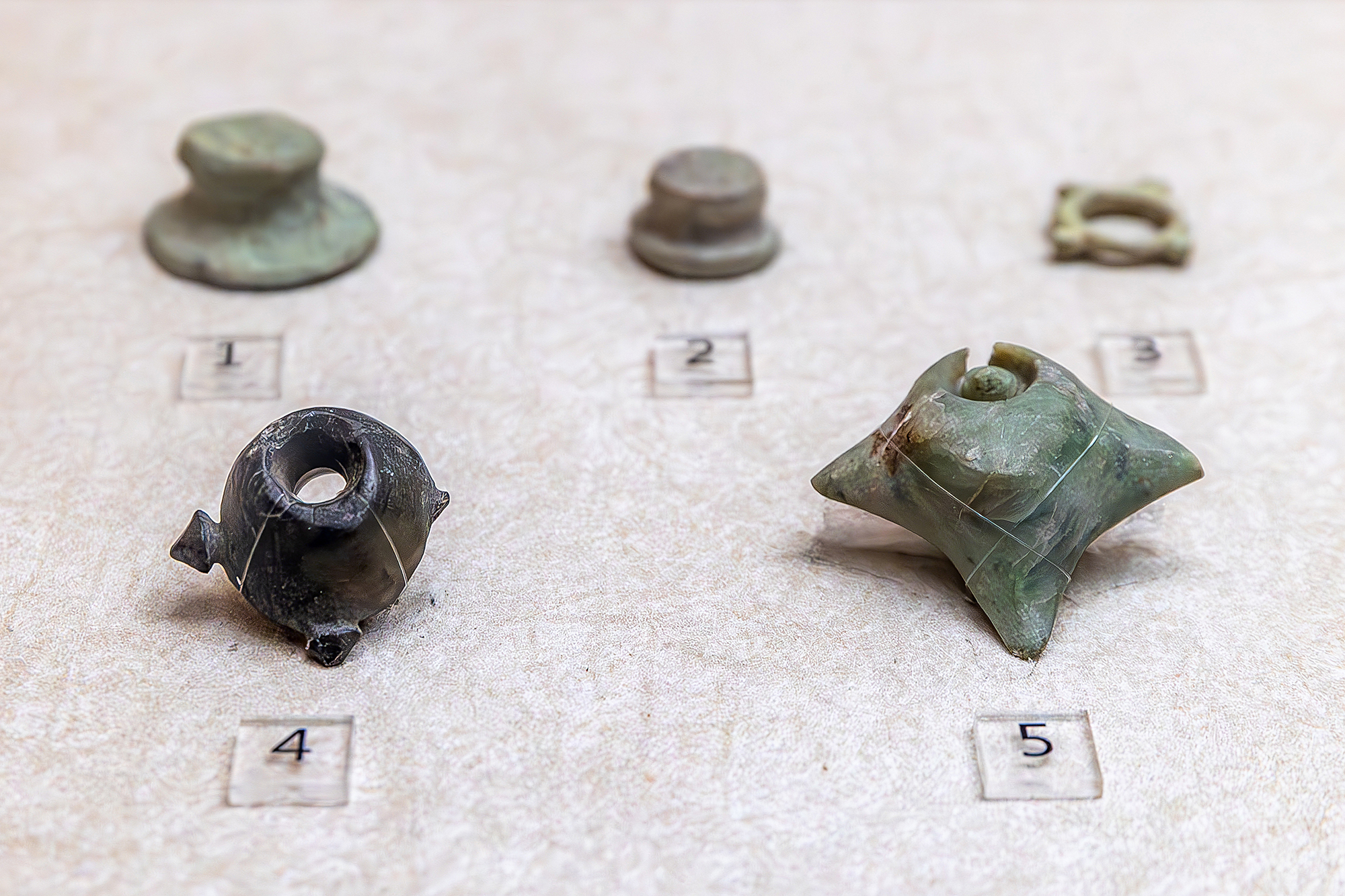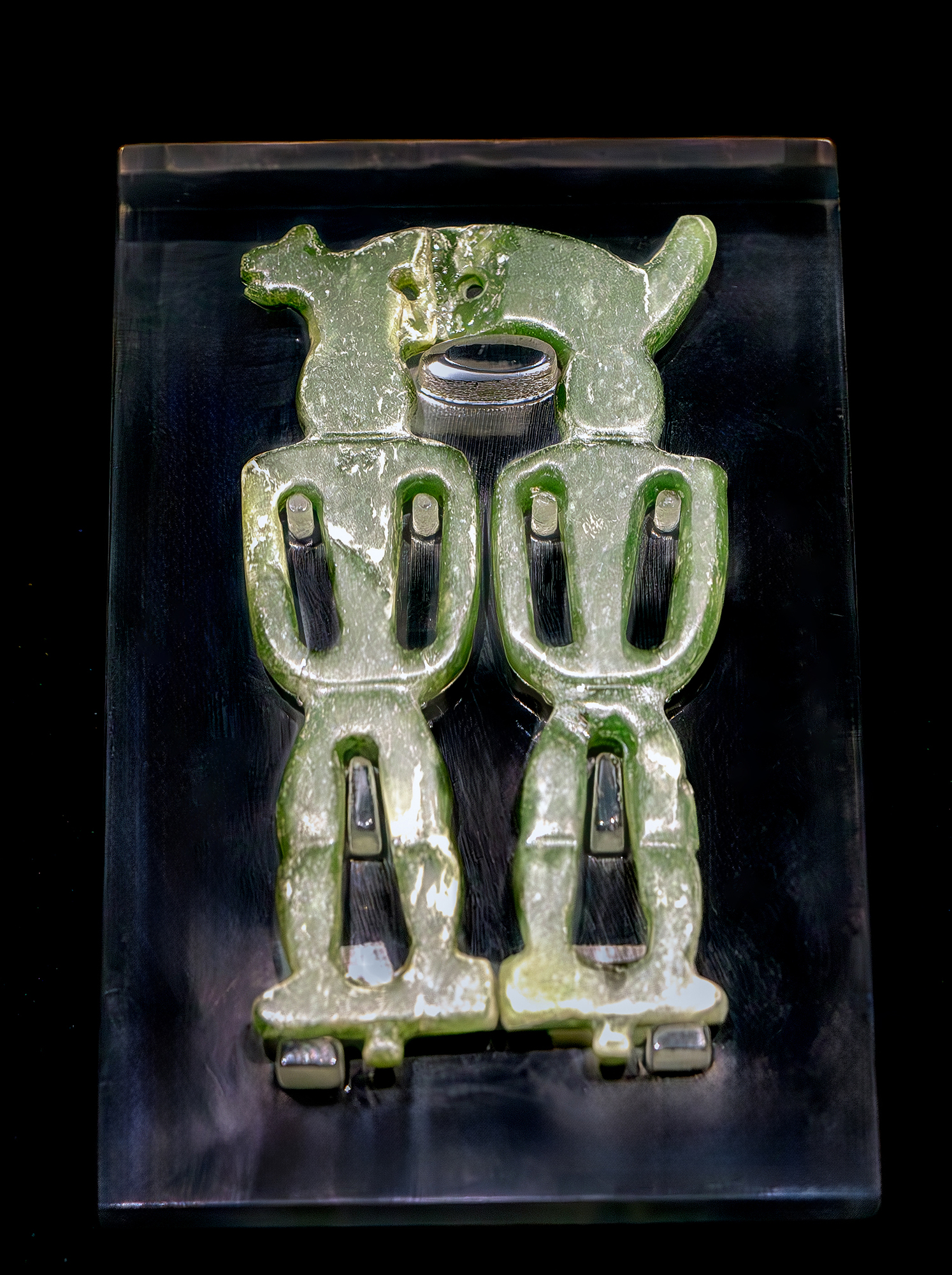 Tergali keluar artefak batu giok Budaya Peinan dalam jumlah besar, menandakan puncak keterampilan pengolahan batu giok pada masa itu. Foto menunjukkan harta nasional anting nefrit giok hewan-antropomorfik.