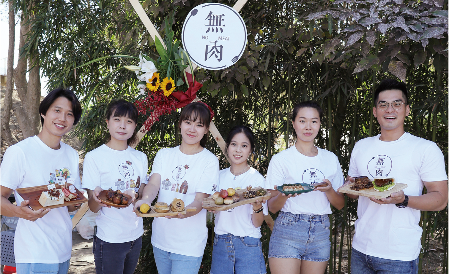 Pasar Tanpa Daging ini telah menjadi ajang berkumpul seratus lebih merek dagang vegetarian. Toko Kue Wheels of Fortune dari Kaohsiung, memasarkan aneka kue rasa San Bei Ji dan bola-bola Boba saus kustar, aromanya sangat memukau. Dari Tainan, Papa Vegan X Tsasan Café mengetengahkan kudapan sosis kecil dalam sosis besar, Tree Nest yang sekarang dikelola generasi kedua menayangkan Toona pancake, juga kudapan tradisional Bakwan “Murah Hati” dengan siraman saus beras, semua mengundang antrean panjang.
