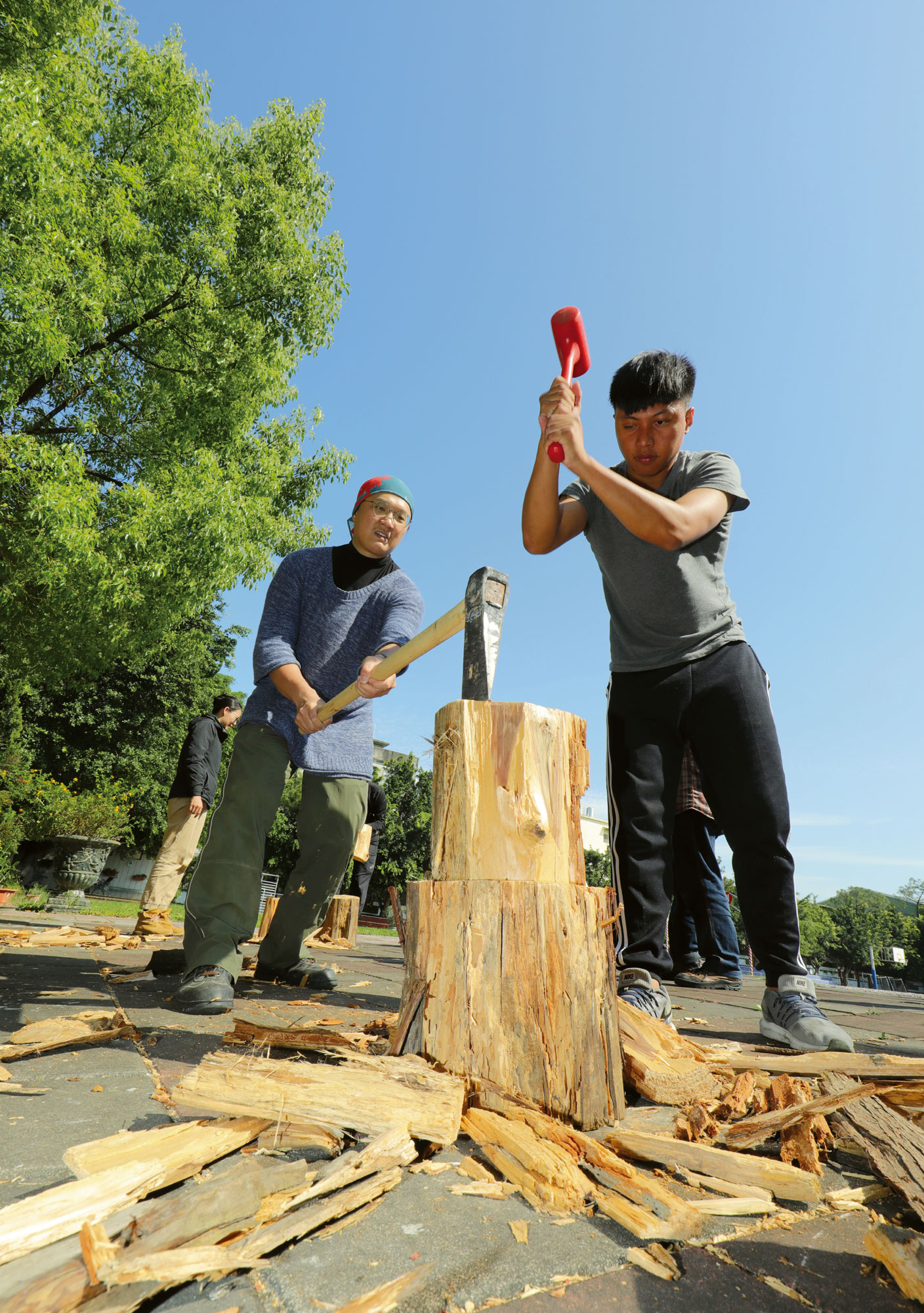 Di tengah lalu lalang manusia yang tengah mengamati produk superior yang dipajang di atas rak-rak pusat perbelanjaan Chung Yo Taichung, terdengar suara pukulan balok kayu di salah satu sudut, yang memecah kesunyian bangunan komersial nan elegan tersebut. Beberapa jam kemudian, sekelompok wanita dengan beberapa serpihan kayu di pakaian mereka, sambil memegang bangku kayu, tersenyum puas dan berjalan meninggalkan pintu masuk pusat perbelanjaan.
