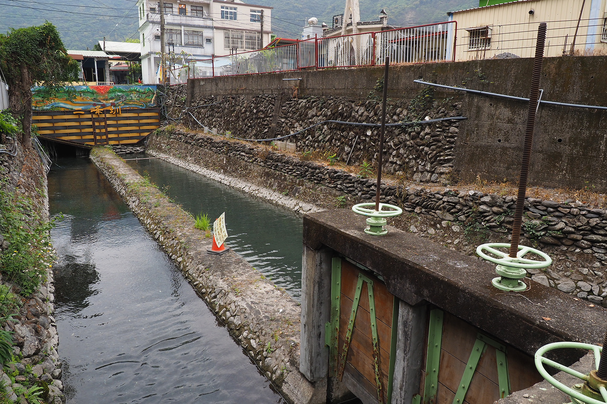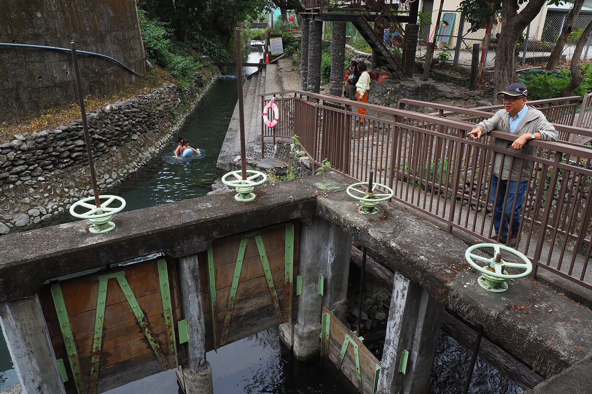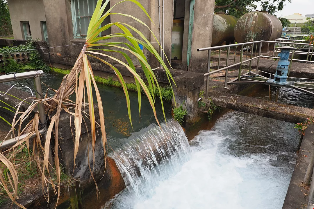 興建於1913年的高屏溪畔竹寮取水站,同樣屬伏流水工程,水勢澎拜又清澈。