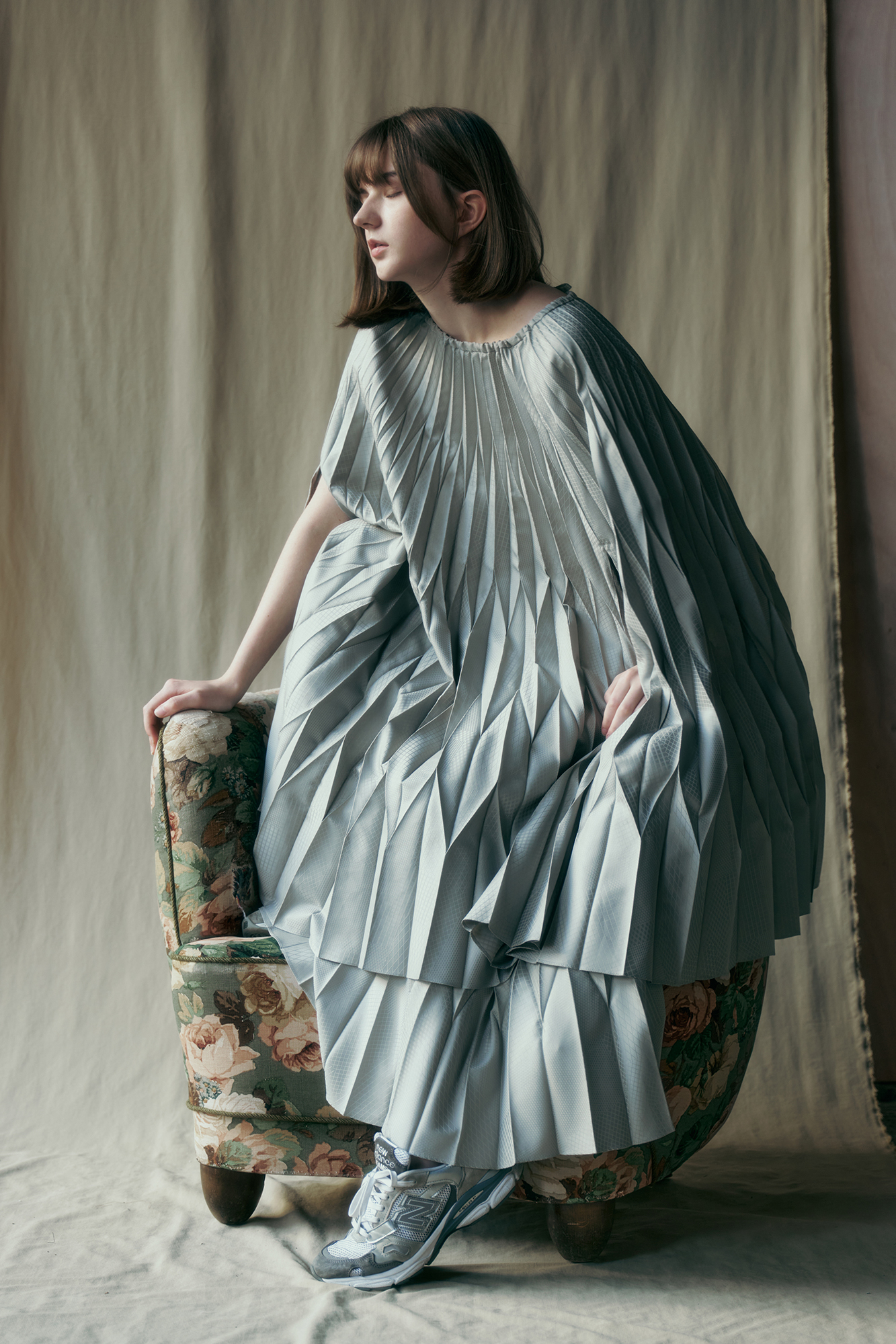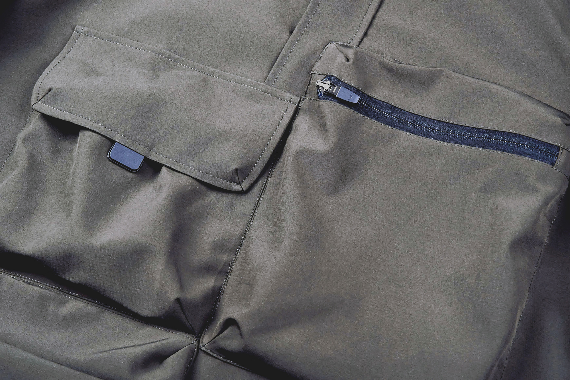 以機能布料為例,如今防水係數已可達到30,000毫米水柱,oqLiq許多服裝與包款皆採用防潑水設計,即使突遇降雨,也能從容應對。她還分享了一項尚未公開的商品,採用高科技紡織讓汗漬隱形,為容易流汗的人解決日常生活中的尷尬時刻。「服裝的機能就像一層隱形的盔甲,」那些看不見的細節,正是設計真正發揮作用的地方。