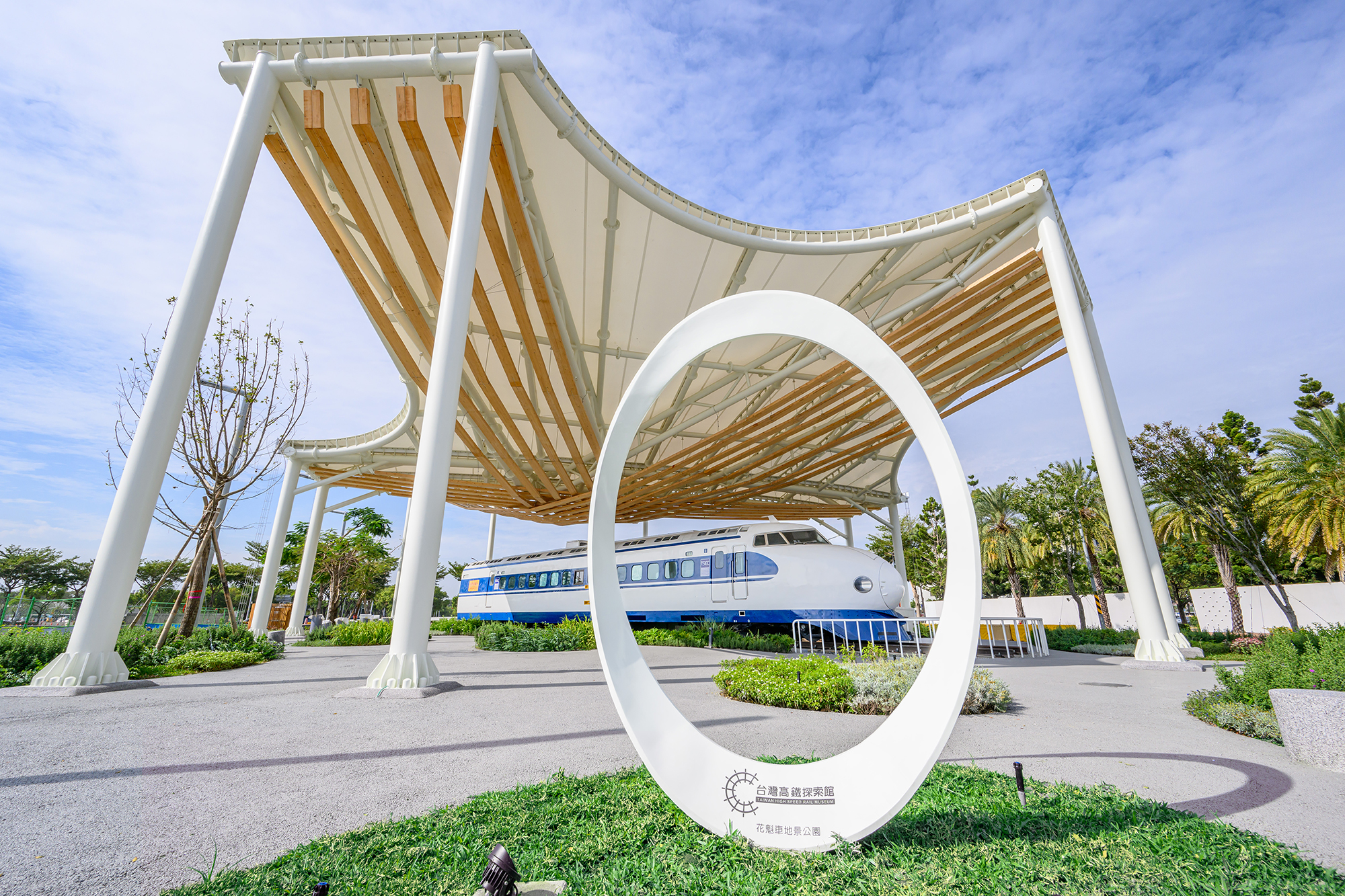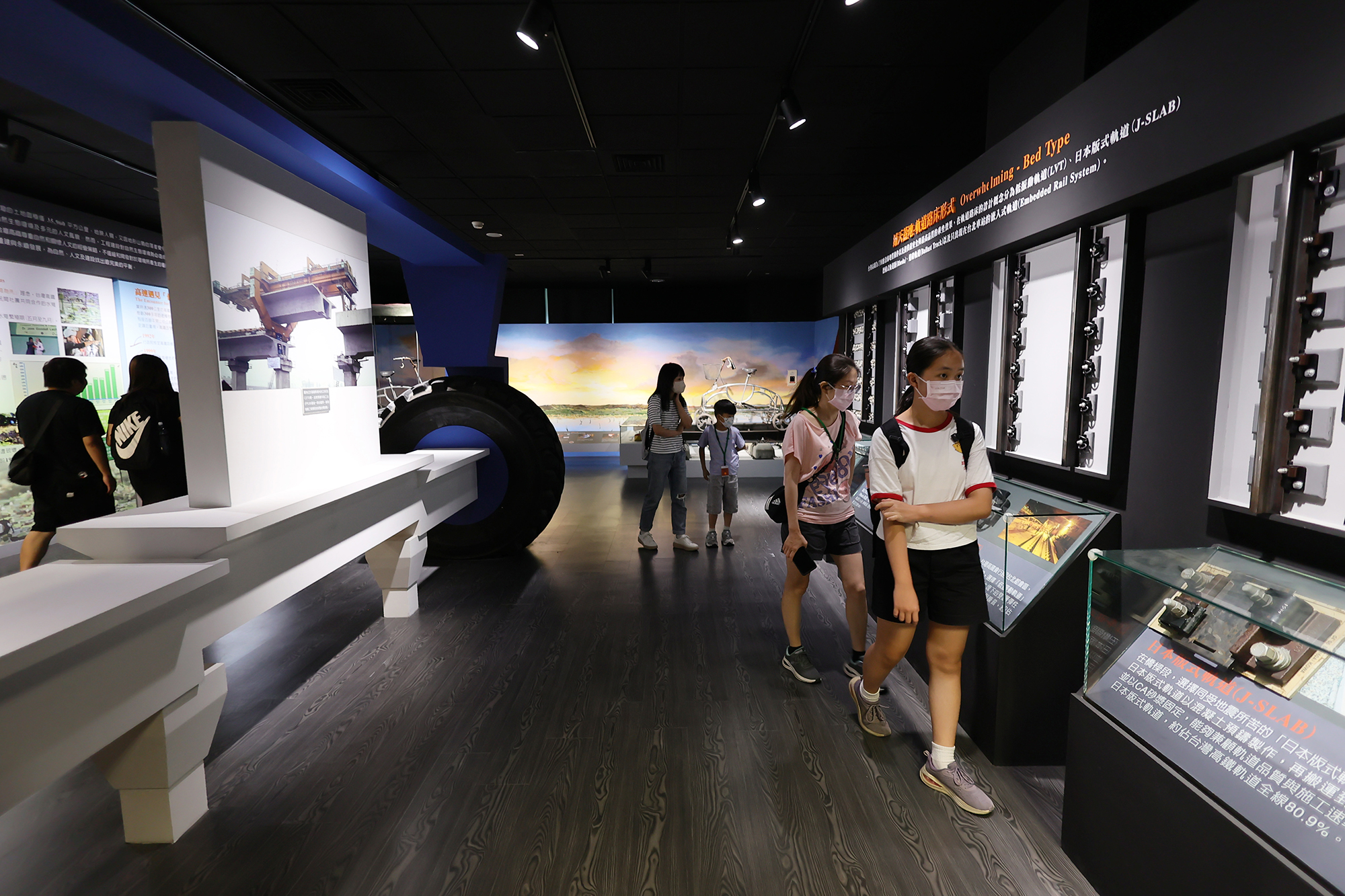 高鐵全線350公里的土木建築、橋梁、隧道、車站、維修基地等,僅耗時4年9個月即完工。探索館提示了相關的工程法,也呈現各國文化的特色,如德商與大陸工程聯合承攬了最長的八卦山隧道(7,357公尺)工程,在施工期間就請來一尊芭芭拉女神,庇佑工程順利。參與林口隧道貫通工程的日本營造商,會灑酒和鹽來祭拜山神,並有保存貫通石的傳統。探索館不忘分享這些多元文化的故事,這些紀念品也入庫高鐵的文物收藏。