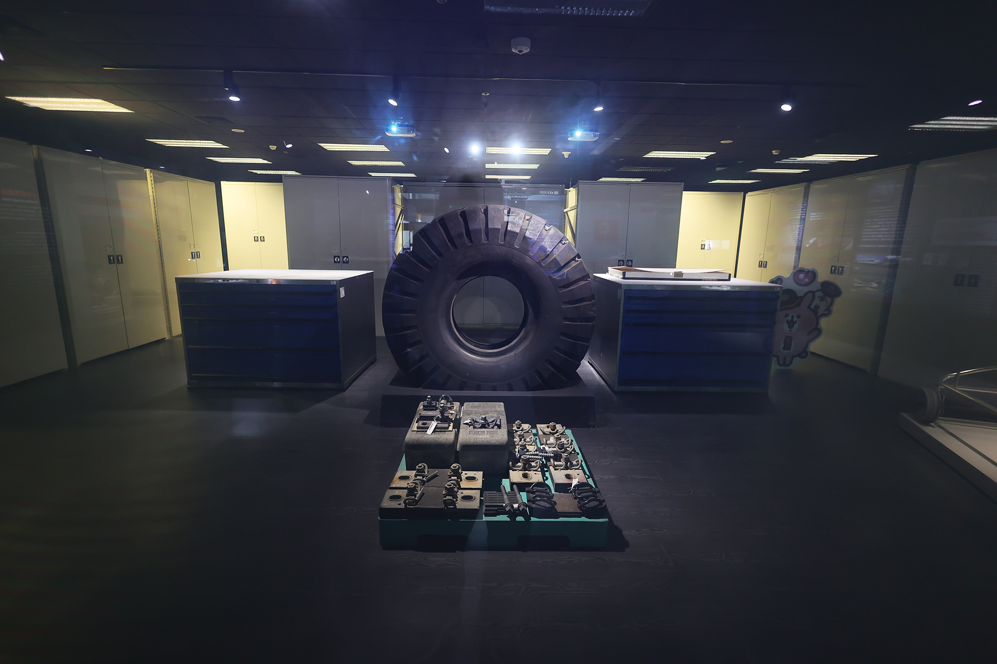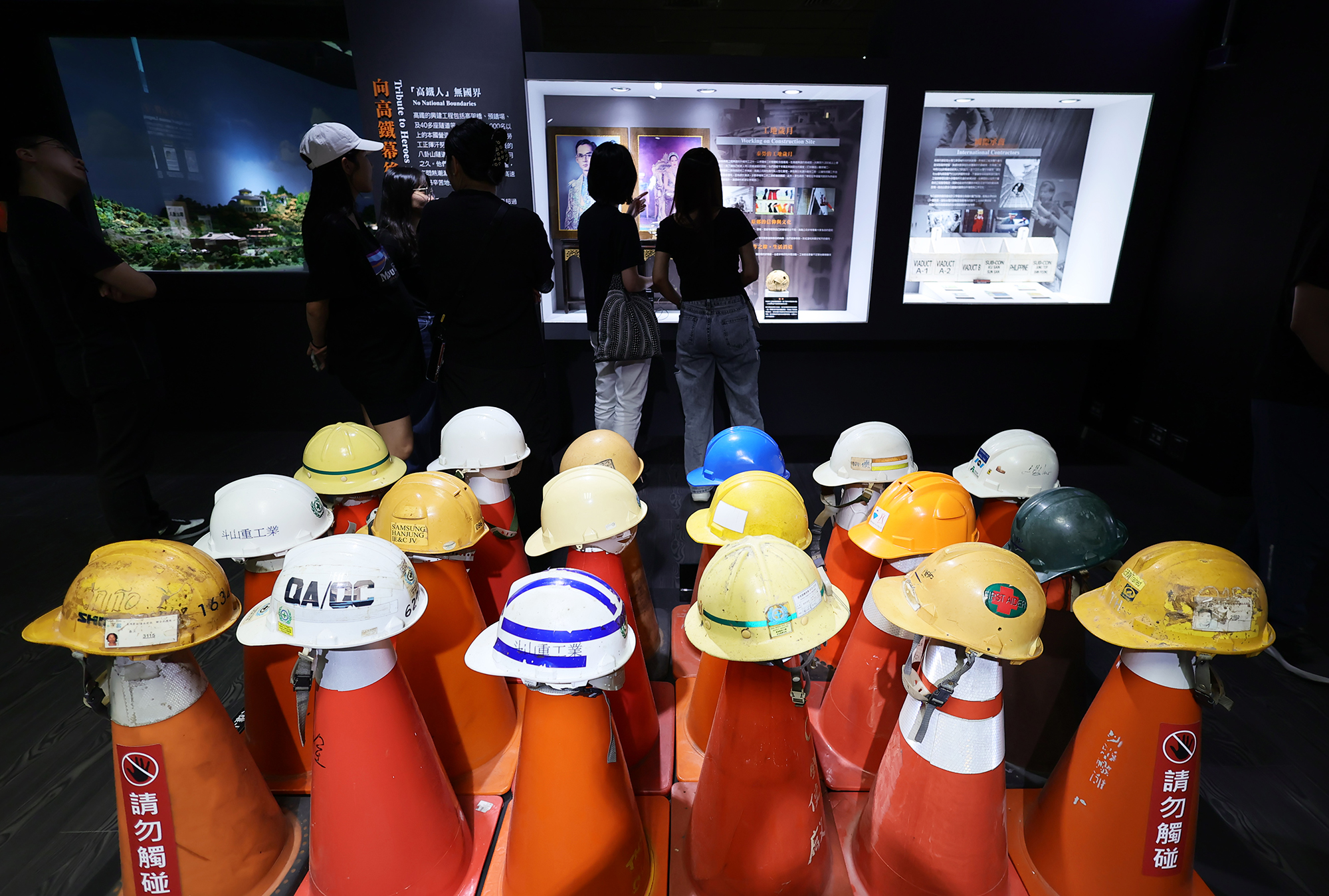 在探索館另一方的角落,展示了各國工程師的安全帽,外籍工程師在台工作時的工作證、健保卡等,泰籍勞工在宿舍區一定會擺放的泰王、王后照片,都是高鐵建造過程中不可抹滅的歷史。