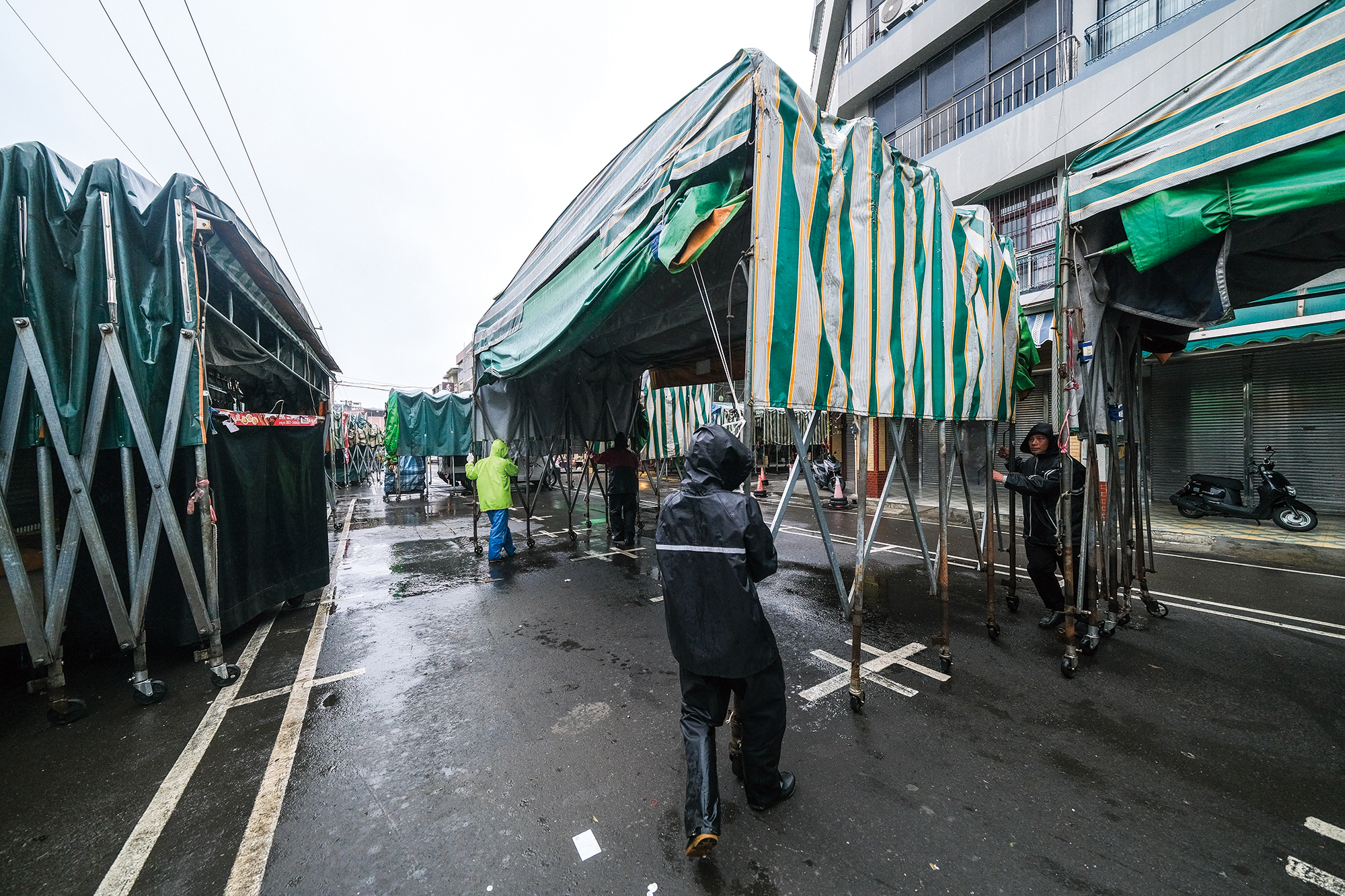 市場的工作人員清晨一點搭起活動棚架,下午兩點準時清場,動作迅速俐落,是竹東市場有趣的人文風景。