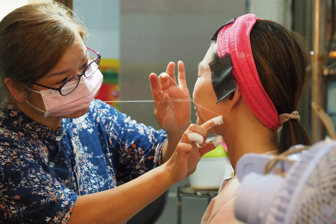 夜市不只有美食,還有許多生活服務,例如饒河街觀光夜市裡的挽面。
