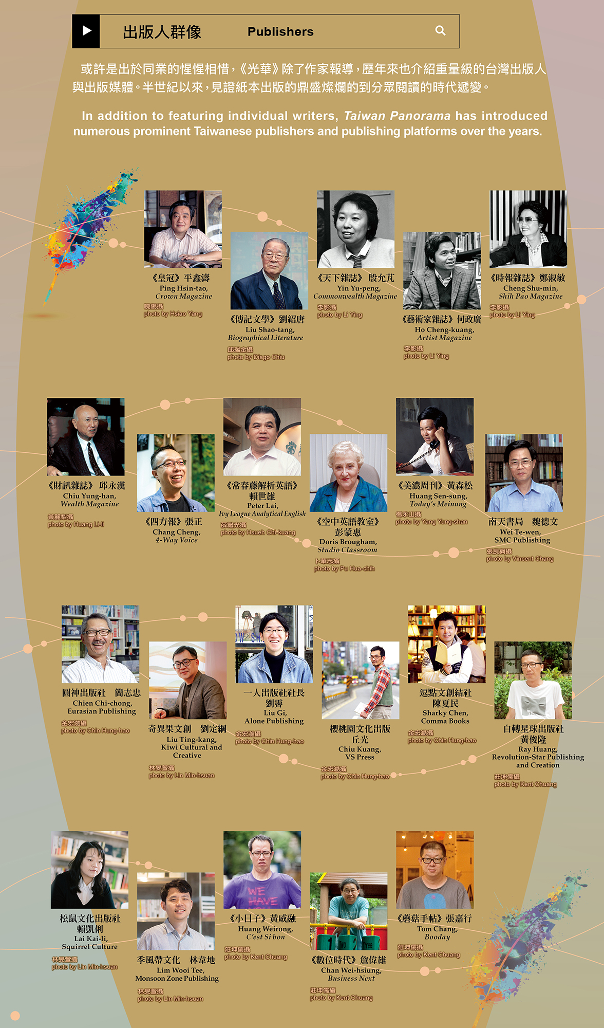 《光華》文壇名人堂 書寫時代的人 文‧蘇俐穎 圖‧外交部圖庫資料 2025 12月 EN 日本語 分享: 在這個時代強調紙本出版,是老派精神的展現。然而,因為有文本的紀錄,才能為我們留下那個未來得及參與的過往。創作者以筆為利器書寫抱負,《光華》透過報導,留下紀錄。 楊牧1940-2020 華文世界最接近諾貝爾獎的詩人 詩、散文、翻譯、評論等著作超過50種,自帶音律的古典美,書寫故鄉花蓮的山風海雨,也有經西方自由主義思潮洗禮的普世關照。瑞典漢學家馬悅然評:「華文世界最接近諾貝爾獎的詩人」。 ──2007年4月號〈雪原下的熊熊烈火──楊牧〉 陳建仲攝 林海音1918-2001 等待作家的伯樂 在文壇被尊稱為「林先生」的林海音,是作家,更是提攜黃春明、七等生、鄭清文、鍾理和等作家的編輯人,創辦「純文學」出版社的出版人。 ──1981年12月號〈作家也懂經營之道──林海音與純文學出版社〉 楊永山攝 吳明益1971- 魔幻寫實之聲 文風融合生態、歷史、魔幻寫實,以《複眼人》獲法國島嶼文學獎;《單車失竊記》入選英國布克國際獎。作品有30本、逾10種以上的外語版本,是國際書市最廣為人知的台灣中生代作家。 ──2014年6月號〈《浮光》:吳明益的影像書寫〉 林格立攝 鄭問1958-2017 漫畫鬼才、天才、異才 不用沾水筆、不用網點,破格的分鏡、構圖,風格強烈,臻達藝術創作的層次。是第一位獲得「日本漫畫協會優秀賞」的外國人,日本人稱「鬼才、天才、異才」,也是第一位進入故宮展覽的漫畫家。 ──1992年4月號〈異才鄭問〉;2018年6月號〈異才.鄭問〉 卜華志攝 白先勇1937- 永遠的台北人 「登場即達顛峰」的白先勇,著有《台北人》、《孽子》,也醉心於崑曲,因其將軍之子的身分以及童年顛沛流離的身世,文風老辣早熟,自帶蒼涼。 ──2015年10月號〈情與美:白先勇的痴戀與追求〉 林格立攝 高行健1940- 首位獲諾貝爾文學獎華人作家 法籍華裔作家,以《靈山》、《一個人的聖經》等作品,在2000年獲諾貝爾文學獎,是華文世界的第一人。曾多次訪台,並在台灣親自編導現代戲曲《八月雪》。 ──2000年11月號〈打破百年孤寂──諾貝爾文學獎得主高行健〉;2002年9月號〈高行健的第三個夢:《八月雪》開鑼〉;2002年10月號〈莎士比亞也瘋狂:高行健談《八月雪》劃世紀演出〉 薛繼光攝 琦君1917-2006 溫婉敦厚有情人 文學評論家夏志清評琦君「溫柔敦厚」。其「見人生人情,見物生物情」,懷舊風格的文字,就像走入時光隧道,讓人像回到母親懷抱地那樣備感親近。 ──1981年3月號〈琦君的世界〉 華台攝 張貴興1956- 在台灣書寫南洋地景 出生英屬砂勞越,1976年來台,留學於師大英語系,而後入籍中華民國。長篇名作如《我思念的長眠中的南國公主》、《野豬渡河》,頗多以南洋婆羅洲為題材,文字詭麗而魔幻。 ──1998年7月號〈文學奇兵逐鹿「新中原」〉;2022年2月號〈在台灣書寫熱帶:馬華作家在台灣〉 林旻萱攝 李琴峰1989- 讓花盛開於彼岸 旅日台灣作家,以第二語言日文從事創作,斬獲眾多日本重要文學獎項,2017年獲「群像新人獎」而出道,2021年以《彼岸花盛開之島》獲芥川獎,是首位獲獎的台灣人。 ──2021年12月號〈盛開彼岸:首位榮獲日本芥川獎的台灣人──李琴峰〉 李琴峰提供,稻垣純也攝 亞榮隆‧撒可努1972- 深入山林的獵人之心 排灣族作家,心繫傳統文化,是獵人學校的創辦者。作品多以描述部落生活以及族群認同為主軸,代表作《山豬.飛鼠.撒可努》曾為哈佛大學應用中文系指定必讀作品之一。 ──2006年2月號〈走風的人──撒可努〉;2018年7月號〈撒可努的獵人學校:獻給台灣的原住民智慧〉 莊坤儒攝 楊小娜1976- 講述名為「台灣」的故事 美國第二代移民,北美目前最廣為人知的台裔作家。20歲才踏上母親故鄉的土地,卻以二二八、白色恐怖為題材寫成《綠島》,獲全球最大出版商企鵝藍燈書屋將其選為「One World, One Book」全球推薦書。 ──2024年5月號〈徜徉台灣地景文學:眺望世界的文化窗景〉 楊小娜提供 葉石濤1925-2008 為台灣文學立座標 被尊稱為「葉老」,生名著作近百本,參與過兩次鄉土文學論戰,還曾因為白色恐怖坐牢,除了《葫蘆巷春夢》、《西拉雅族的末裔》等名作,首本台灣人撰寫的文學史《台灣文學史綱》,更為台灣文學樹立起座標。 ──2005年1月號〈為台灣文學立座標──葉石濤〉 林格立攝 張戎1952- 說中國故事給西方人聽 以傳記《鴻:三代中國女人的故事》成名的英籍華裔作家張戎。該書以英文寫作,為西方讀者深入現代中國的心靈,《時代週刊》評其細緻的書寫,具有「狄更斯的風格」。 ──1993年4月號〈說故事的人──張戎專訪〉 邱瑞金攝 關鍵字: 光華50 林海音 葉石濤 吳明益 楊小娜 李琴峰 鄭問 撒可努 琦君 楊牧 高行健 白先勇 張戎 歷史 人物 國民 語文 文化 文學 文創 產業 動漫 分享: