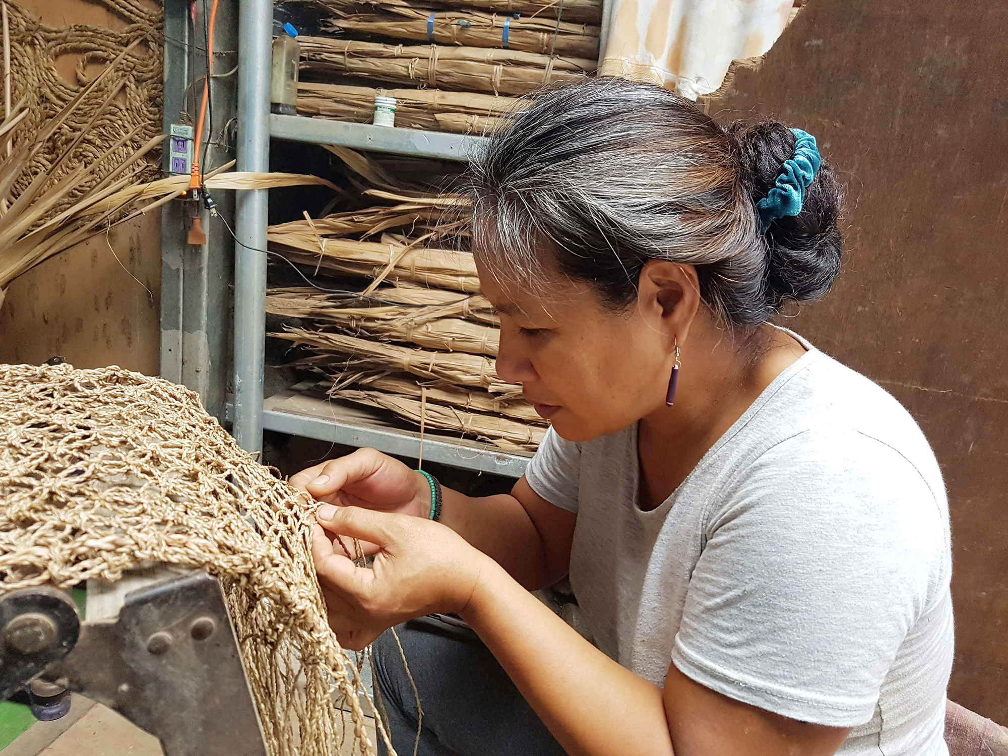 除了傳統的月桃葉鞘編織,布妮更精進月桃編織的技藝,希望把技法往工藝品的層次推進。