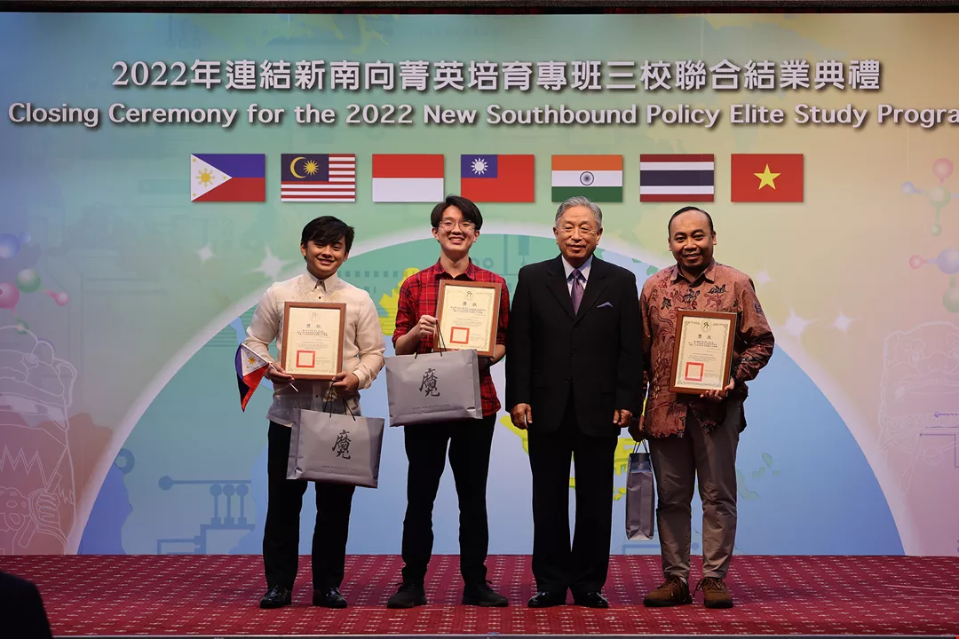 榮獲部長獎的菁英班學生,從次長田中光手中接下獎狀與禮品。