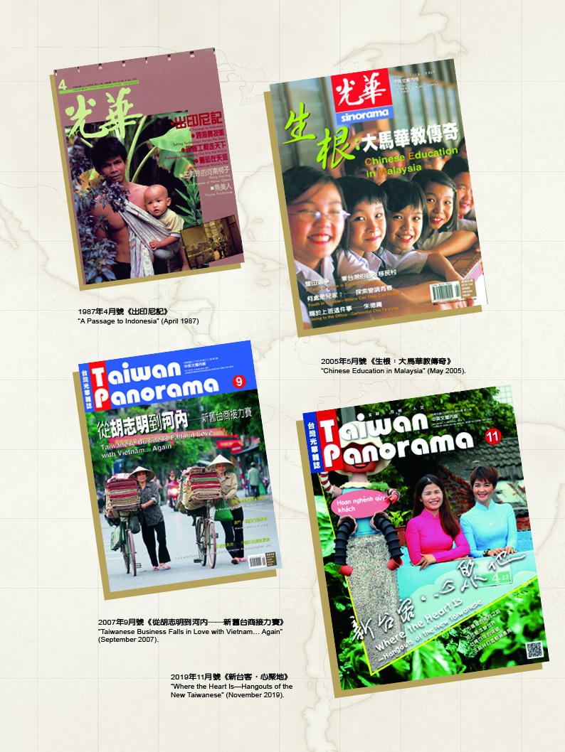 《光華》(中英文版)最早的東南亞報導出現於1987年4月號的〈出印尼記〉。內容並非報導印尼有美麗的海灘,或是美味的沙嗲、繽紛的蠟染,而是台灣中鋼和榮工處在印尼所興建的第一座冷軋煉鋼廠,當時煉鋼廠是我國技術輸出層次最高的一次。